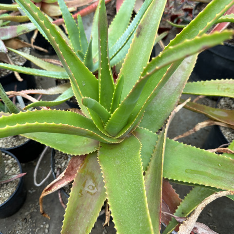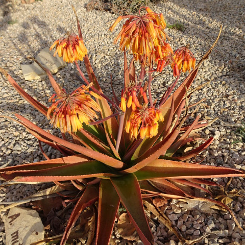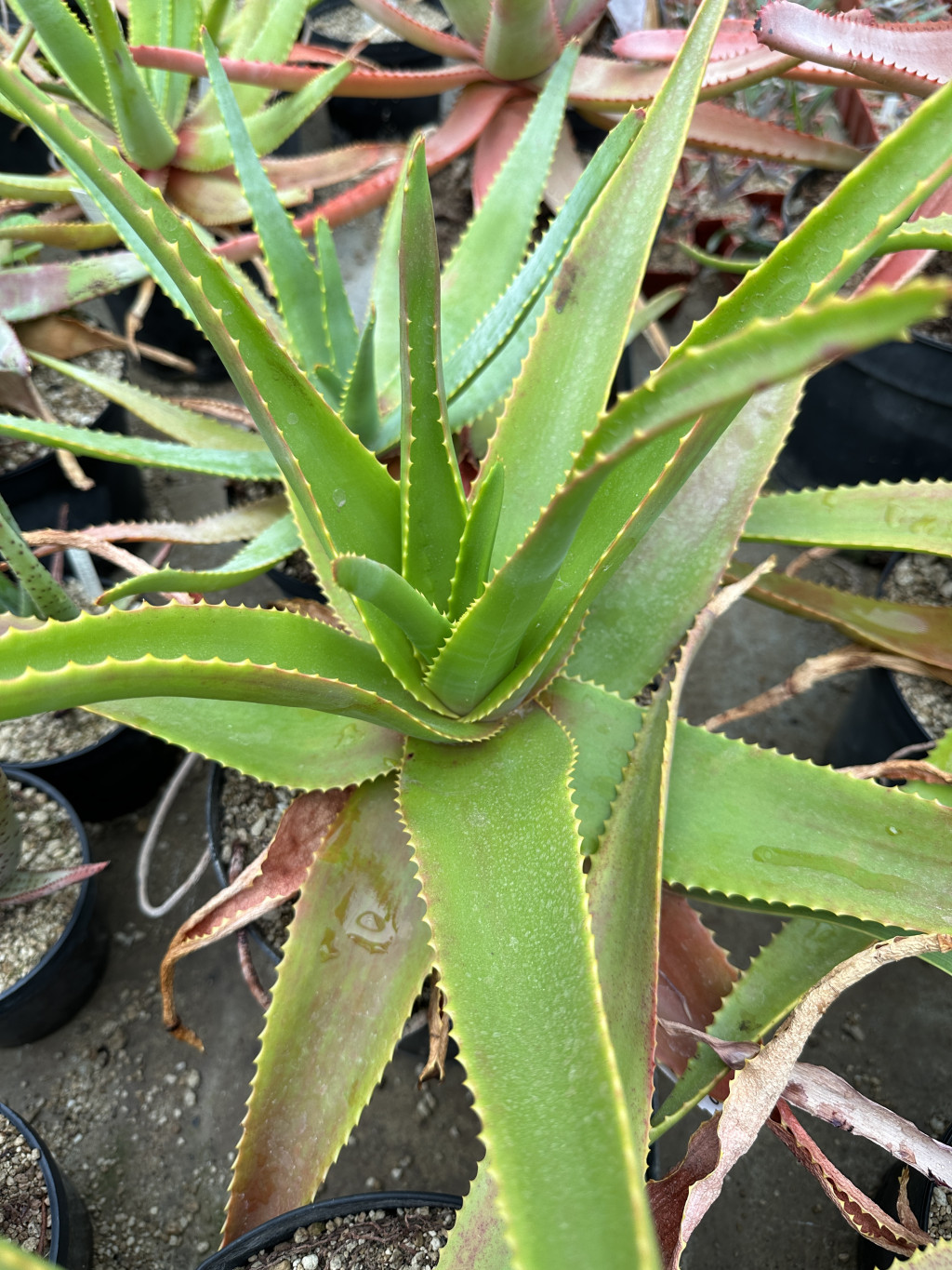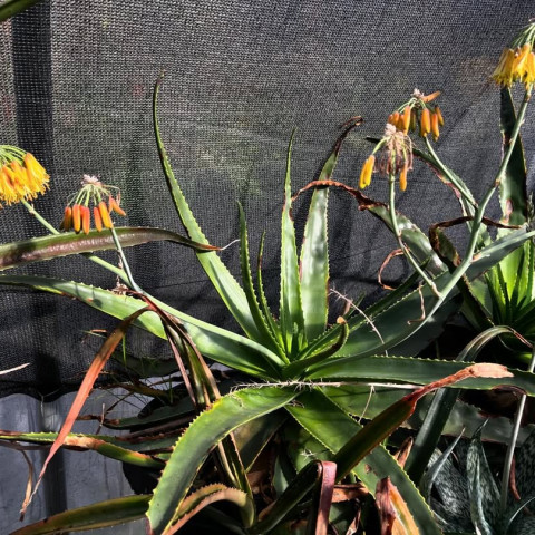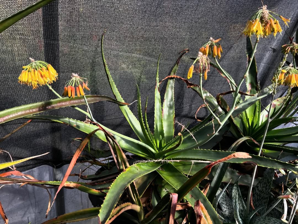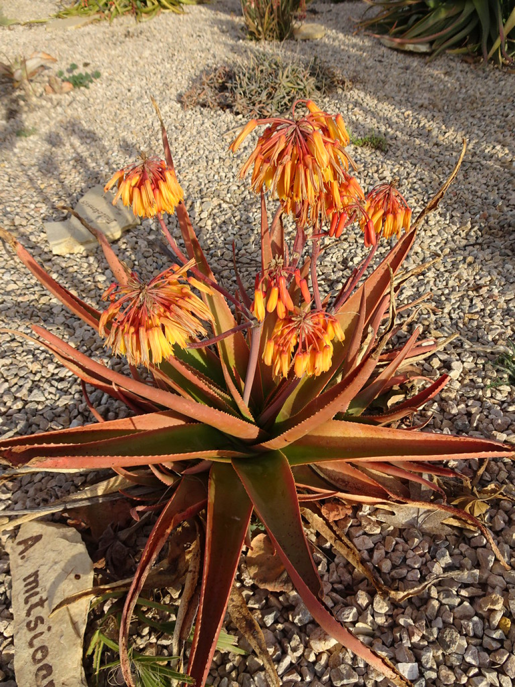 Aloe mitsioana, Madagascar kökenli, rozet formunda gelişen ve özellikle gösterişli çiçeklenmesiyle dikkat çeken Aloe türlerinden biridir. Doğal yaşam alanında kayalık, iyi drene olan ve dönemsel olarak kuraklaşan bölgelerde yetişir. Bu nedenle bakım ihtiyaçları da sıcaklık, güçlü ışık ve hızlı kuruyan toprak dengesi üzerine kuruludur. Tür, koleksiyon yetiştiriciliğinde yalnızca yaprak formu için değil, sarkık ve yoğun çiçek kümeleri nedeniyle de değer görür. Uygun koşullarda zamanla genişleyen kümeler oluşturabilir ve olgun bireylerde aynı dönemde birden fazla çiçek sapı gelişebilir. Aloe mitsioana yaprakları uzun, dar, etli ve mızrak formundadır. Yapraklar merkezden dışa doğru simetrik şekilde dizilerek açık rozet görünümü oluşturur. Renk çoğunlukla orta yeşil ile koyu yeşil arasında değişir. Güçlü ışık altında yaprak kenarlarında kızıl veya bronz tonlar gelişebilir. Kenarlarda belirgin dişler bulunur ve bu dişler türün karakteristik görünümüne katkı sağlar. Yaprak yüzeyi genellikle düz yapıdadır. Sağlıklı gelişimde yapraklar sert ve diri kalır; yetersiz ışıkta ise daha ince, uzamış ve gevşek bir görünüm oluşabilir.