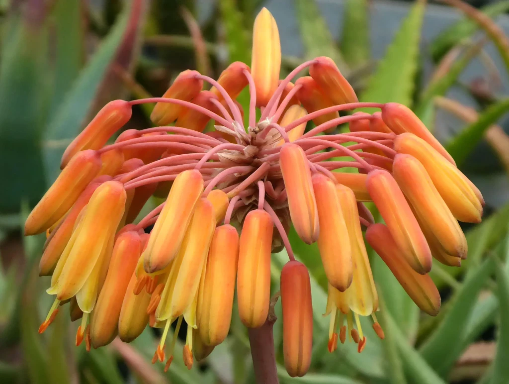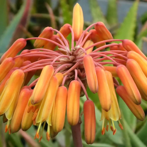 Bu türün en dikkat çekici özelliği çiçekleridir. Aloe mitsioana uzun çiçek sapları üzerinde aşağı doğru sarkan yoğun çiçek kümeleri oluşturur. Çiçekler tüpsü yapıda ve turuncu ile sarı geçişli tonlardadır. Aynı salkım üzerinde farklı renk yoğunlukları görülebilir. Çiçeklenme dönemi geldiğinde bitki oldukça gösterişli hale gelir. Güçlü ışık, sağlıklı kök sistemi ve doğru sulama dengesi çiçeklenme başarısını artıran temel faktörlerdir.