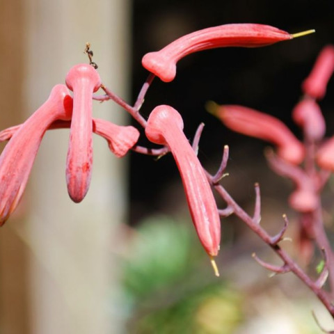 Çiçeklenme döneminde Aloe monotropa uzun çiçek sapları oluşturur. Sap üzerinde tüpsü yapıda çiçekler gelişir. Çiçekler çoğunlukla pembe - turuncu veya mercan tonlarında görülür. Çiçeklenme miktarı bitkinin yaşı, ışık seviyesi ve genel sağlığına bağlı olarak değişebilir.