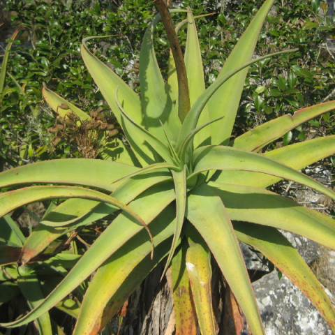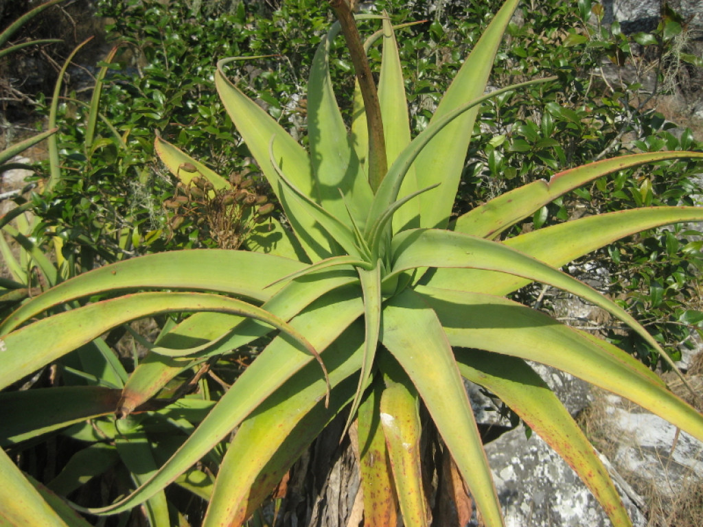 Aloe munchii, gövde oluşturarak yükselen yapısı, uzun kıvrımlı yaprakları ve gösterişli çiçek saplarıyla dikkat çeken iri Aloe türlerinden biridir. Doğal yaşam alanında kayalık yamaçlar, iyi drene olan zeminler ve yüksek ışık alan açık bölgelerde gelişir. Zamanla tek başlı büyük bireyler oluşturabileceği gibi uygun koşullarda dallanarak çok başlı görünüm de kazanabilir. Aloe munchii yaprakları uzun, geniş, kalın ve belirgin şekilde dışa doğru kıvrılarak gelişir. Yapraklar merkezde geniş rozet oluşturur, yaşlandıkça aşağı doğru yay şeklinde sarkabilir. Renk çoğunlukla gri-yeşil, maviye çalan yeşil veya mat yeşil tonlarındadır. Güçlü güneş ve kuraklık koşullarında yaprak kenarlarında kızarma veya bronz tonlanmalar görülebilir. Kenarlarda düzenli dişler bulunur. Yaprak uçları inceleyerek uzar ve bitkiye hareketli bir görünüm kazandırır.