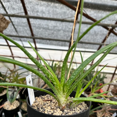 Aloe musapana, ince yapraklı formu, zarif gelişim yapısı ve parlak turuncu çiçekleriyle öne çıkan Aloe türlerinden biridir. Doğal yaşam alanında çayırlık alanlar, taşlı yamaçlar ve iyi drene olan açık bölgelerde gelişir. Birçok iri aloe türüne kıyasla daha hafif ve narin bir görünüm sergiler. Yaprak yapısı ince olsa da sukulent karakterini korur ve su depolayarak kurak dönemlere dayanabilir. Uygun koşullarda kümelenerek gelişebilir ve çiçeklenme döneminde ince saplar üzerinde yükselen canlı renkli çiçekleriyle dikkat çeker. . Aloe musapana yaprakları uzun, dar, ince ve şerit formuna yakın yapıdadır. Yapraklar merkezden çıkarak açık rozet oluşturur ve zamanla dışa doğru hafif yaylanabilir. Renk çoğunlukla parlak yeşil veya orta yeşil tonlarındadır. Bazı bireylerde yaprak tabanında açık renkli beneklenmeler görülebilir. Kenarlarda küçük dişler bulunur ancak iri aloe türlerindeki kadar sert ve belirgin değildir. Yaprakların ince yapısı, türe daha zarif bir görünüm kazandırır. Sağlıklı bireylerde yapraklar diri ve esnek yapıdadır. Yetersiz ışıkta yapraklar uzayabilir ve zayıf gelişim gösterebilir.