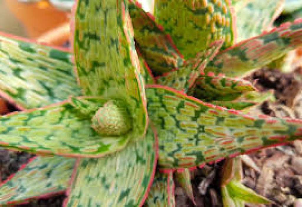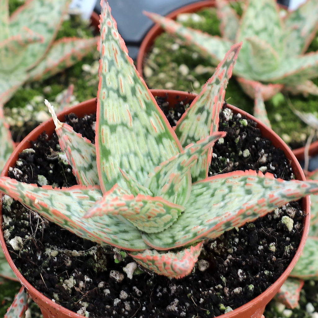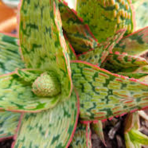 Aloe 'Pink Blush', kompakt gelişim gösteren hibrit aloe kültivarlarından biridir. Ebeveynleri bilinmemektedir. Özellikle yaprak yüzeyindeki desenleri, pembe tonlara yaklaşabilen kenar renklenmesi ve küçük rozet formu ile tanınır. Kurak oşullara uyum sağlayabilen sukulent yapısı sayesinde fazla bakım istemeden yetiştirilebilir. Ancak sağlıklı formunu koruyabilmesi için ışık, sulama ve toprak dengesinin doğru kurulması gerekir. Aloe 'Pink Blush' yaprakları kısa ile orta boy arasında, üçgenimsi mızrak formunda ve etli yapıdadır. Yapraklar merkezden simetrik şekilde çıkarak yıldız benzeri rozet görünümü oluşturur. En dikkat çekici özelliği, açık yeşil ile gri-yeşil zemin üzerinde görülen düzensiz benekli veya mozaik desenlerdir. Bu desenler krem, açık pembe veya soluk beyaz tonlar gösterebilir. Yaprak kenarlarında belirgin pembe hat oluşabilir. Işık düzeyi arttıkça pembe tonlar daha güçlü hale gelebilir. Kenarlarda küçük dişler bulunur. Yaprak dokusu sert ve dolgun olmalıdır; yumuşama genellikle fazla sulama veya kök problemi ile ilişkilidir.