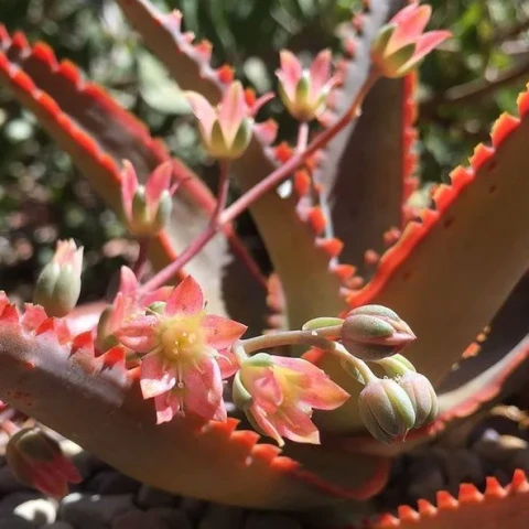Aloe ‘Swordfish’, Aloe cinsine ait hibrit karakterli, özellikle uzun ve keskin hatlı yaprak formu ile öne çıkan nadir bir sukulenttir. Hibritlendiği Aloe türleri bilinmemektedir. Bu tür hibrit Aloe formları, farklı türlerin morfolojik özelliklerini bir araya getirerek daha belirgin yaprak yapısı ve güçlü diken formasyonu oluşturabilir. Bitki genellikle rozet formunda gelişir, ancak zamanla gövde belirginleşebilir ve daha dikey bir yapı kazanabilir. Uygun koşullarda yan sürgünler oluşturarak kümelenme eğilimi gösterebilir. Aloe ‘Swordfish’ yaprakları uzun, dar ve belirgin şekilde sivri uçludur. Yaprak yüzeyi çoğunlukla mat veya hafif mumsu bir görünüme sahiptir. Renkler genellikle gri-yeşil ile koyu yeşil arasında değişirken, ışık ve çevresel koşullara bağlı olarak kırmızımsı tonlar gelişebilir. Yaprak kenarlarında düzenli aralıklarla dizilmiş, oldukça belirgin ve keskin dişler bulunur. Bu dişler çoğunlukla kırmızı veya turuncuya çalan pigmentasyon gösterir ve bitkinin “kılıç” benzeri görünümünü destekler. Yaprak yüzeyinde zaman zaman hafif lekelenmeler veya renk geçişleri görülebilir. Yaprak dokusu, fazla nem ve düşük hava sirkülasyonu koşullarında hassasiyet gösterebilir.
