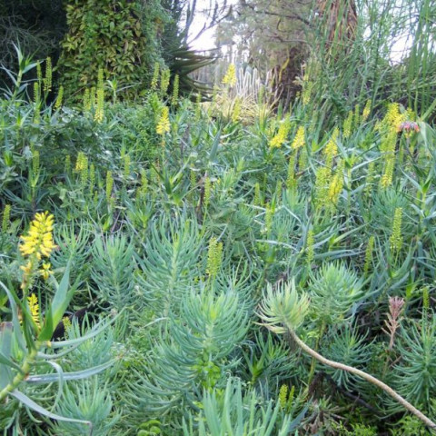 Saksı seçiminde dengeli ve kök yapısına uygun kaplar tercih edilmelidir. Ancak bu tür zamanla genişlediği için bahçeye dikildiğinde çok daha etkileyici gelişim gösterir. Toprak saksı kullanımı kontrollü nem dengesi açısından avantaj sağlayabilir. Çoğaltma oldukça kolaydır. Gövde çelikleri, yan sürgünler ve bölme yöntemiyle çoğaltılabilir. Kesim yapılan parçaların kısa süre kurutulup ardından dikilmesi başarı oranını artırır. Gübreleme yalnızca ilkbaharda, düşük dozlu ve dengeli sukulent gübresi ile yapılmalıdır. Aşırı gübreleme hızlı fakat zayıf büyüme oluşturabilir. Çiçeklenme döneminde uzun saplar üzerinde çok sayıda ince tüpsü sarı çiçek açar. Yoğun çiçeklenme dönemlerinde bitki adeta sarı çiçek bulutuyla kaplanmış gibi görünür.