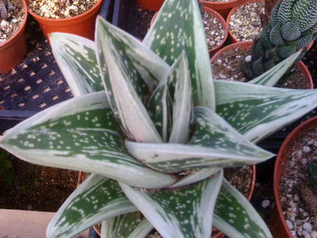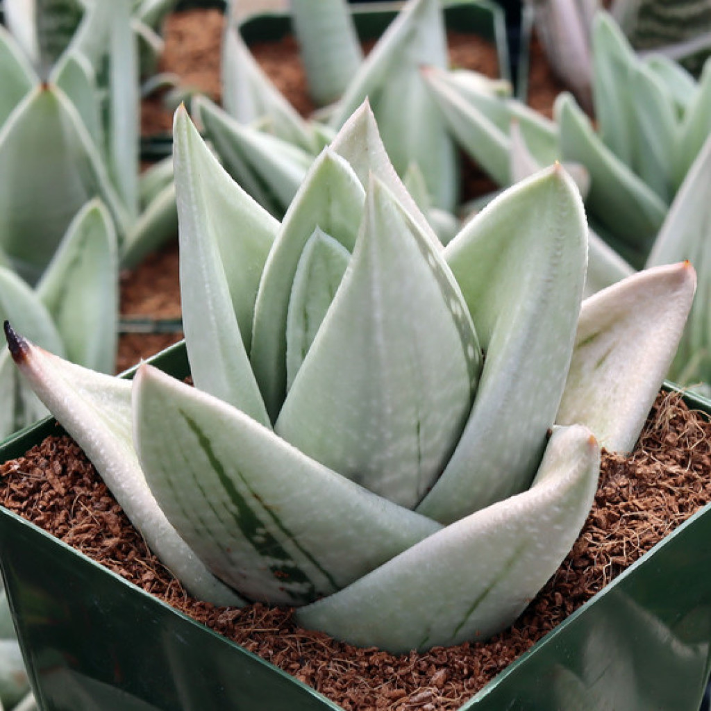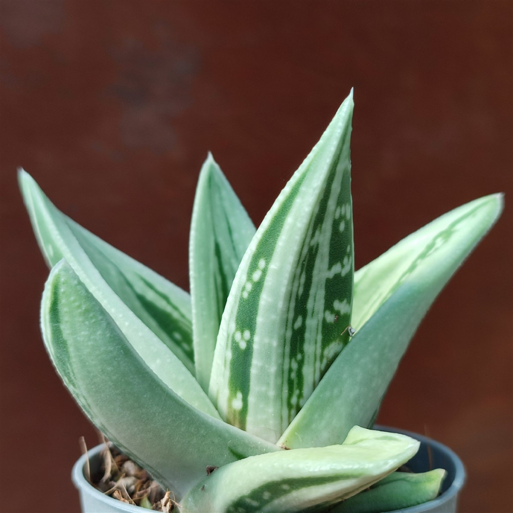 ×Gasteraloe ‘Green Ice’ yaprakları kalın, etli ve su depolama kapasitesi yüksek yapıdadır. Yaprak formu çoğunlukla üçgenimsi, hafif daralan ve sivri uçlu şekildedir. Yüzeyde açık renkli benekler, küçük noktalar veya ince çizgisel desenler görülebilir. Bu desenler koyu ya da parlak yeşil zemin üzerinde daha belirgin hale gelir. Yaprak kenarlarında küçük dişler bulunabilir ancak sert dikenli bir yapı beklenmez. Sağlıklı yapraklar sert, dolgun ve merkezden dengeli biçimde açılır. Yetersiz ışıkta yapraklar uzayabilir, araları açılabilir ve bitkinin kompakt görünümü bozulabilir. Fazla nem koşullarında ise yumuşama, saydamlaşma veya tabandan bozulma görülebilir.