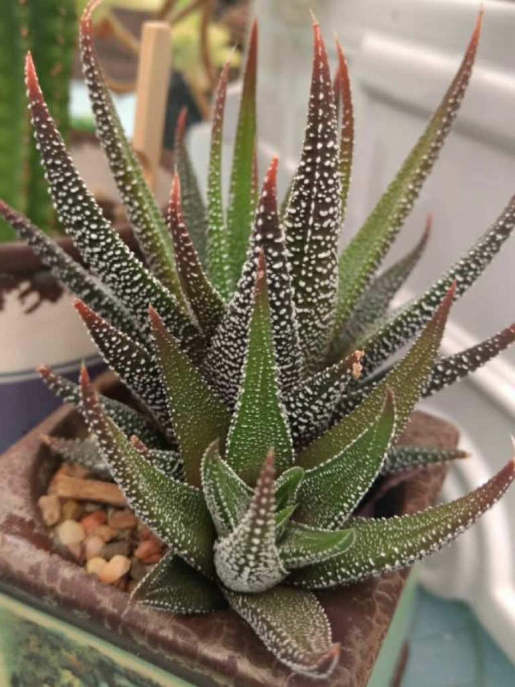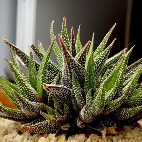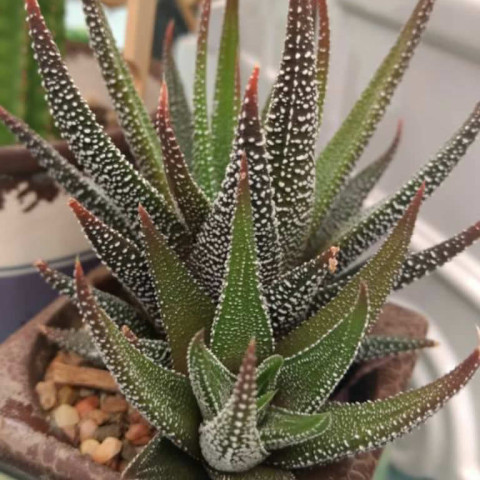 Haworthia attenuata var. radula (yeni kaynaklarda Haworthiopsis attenuata var. radula olarak da yer alabilir),yoğun kabartılı yaprak yüzeyi, sert dokusu ve belirgin rozet formuyla öne çıkan dikkat çekici bir sukulent varyetesidir. Haworthia attenuata grubunun en tanınan formlarından biri kabul edilir. “Radula” adı, yaprak yüzeyindeki daha kaba ve belirgin tüberküllü yapıya işaret eder. Bu nedenle klasik attenuata formlarına göre daha dokulu ve güçlü bir görünüm sergiler. Güney Afrika kökenli olan bu bitki, doğal ortamında kurak ve taşlı bölgelerde gelişir. Dayanıklı yapısı sayesinde uygun bakım koşullarında uzun yıllar sağlıklı şekilde yetiştirilebilir.