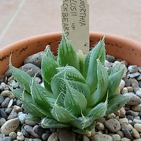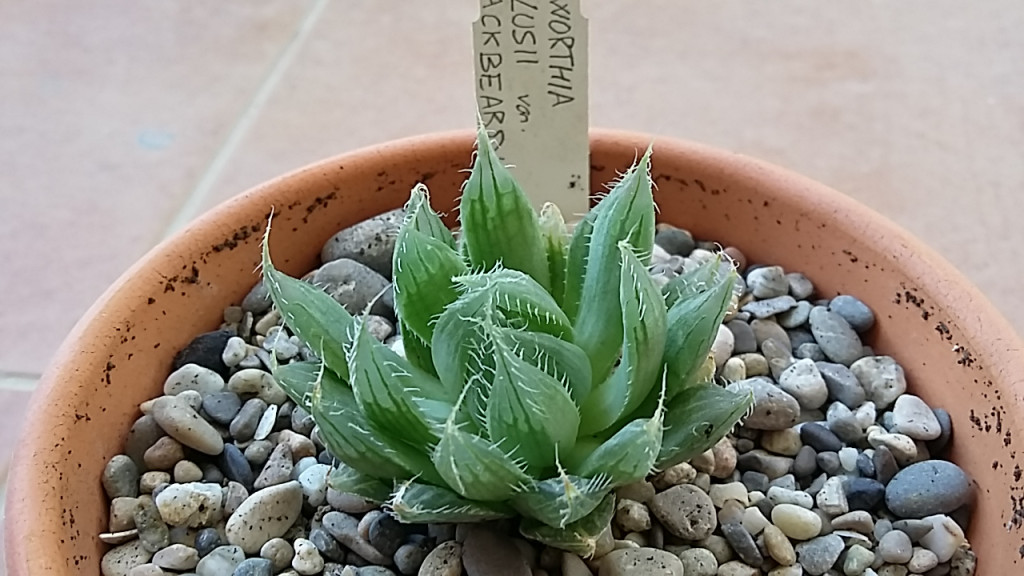 Haworthia bolusii var. blackbeardiana, Haworthia bolusii türü içinde daha uzun yapraklı, daha belirgin pencere dokulu ve kenar kirpikleriyle öne çıkan özel varyetelerden biridir. Türün klasik kompakt yapısını korurken daha yıldızsı ve düzenli rozet görünümü sunar. Koleksiyonlarda özellikle simetrik dizilimi, yarı saydam yaprak uçları ve ince kirpikli kenarları nedeniyle ilgi görür. Uygun bakım koşullarında yavaş fakat dengeli şekilde gelişir ve zamanla yavrulayarak kümeler oluşturabilir. Bu varyetenin en belirgin özelliği, dar üçgensi yapraklarının ucuna doğru incelen formu ve yaprak yüzeyindeki pencere dokusudur. Yapraklar etli yapıdadır ve su depolar. Üst yüzeylerde yarı saydam alanlar ile ince damar desenleri görülebilir. Bu yapı, doğal yaşam alanlarında ışığın yaprak iç dokularına iletilmesine yardımcı olur. Yaprak kenarlarında ince beyaz kirpikler bulunur. Bu kirpikli görünüm, türün karakteristik estetik detaylarından biridir. Yaprak rengi açık yeşilden gri-yeşile kadar değişebilir. Güçlü ışık altında ton koyulaşabilir veya hafif bronzlaşma görülebilir. Sağlıklı bireylerde rozet sıkı, dengeli ve simetrik görünür.