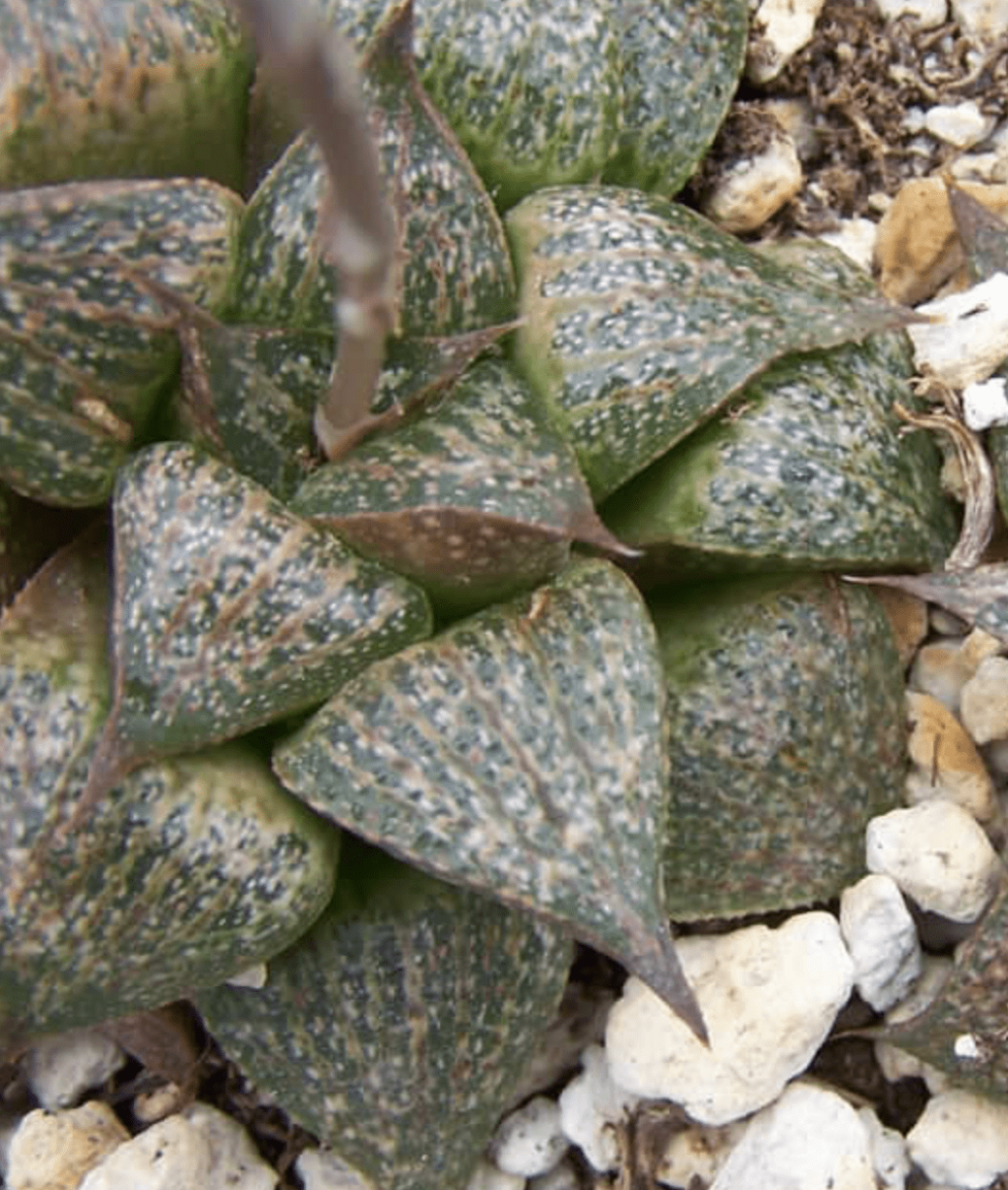Bu varyetede yapraklar etli, kısa ile orta uzunluk arasında, üçgensi ya da yumurtamsı uçlu bir formda gelişir. Yaprakların dış yüzeyi genellikle koyu yeşil, zeytin yeşili, gri-yeşil veya hafif kahverengimsi tonlar gösterebilir. Üst yüzeyde ise yarı saydam pencere alanları ve bu alanlar üzerinde çizgili ya da ağsı desenler bulunur. Yaprakların uç kısmı genişçe sonlanabilir ve bu da bitkiye dolgun bir görünüm kazandırır. Işık miktarına bağlı olarak yaprak rengi değişebilir. Daha aydınlık ortamlarda desenler daha belirgin hale gelirken, bitki hafif koyulaşabilir. Düşük ışıkta ise yapraklar daha yeşil kalır, fakat rozet formu gevşeyebilir ve bitkinin kendine özgü pencere dokusu daha silik görünmeye başlayabilir.