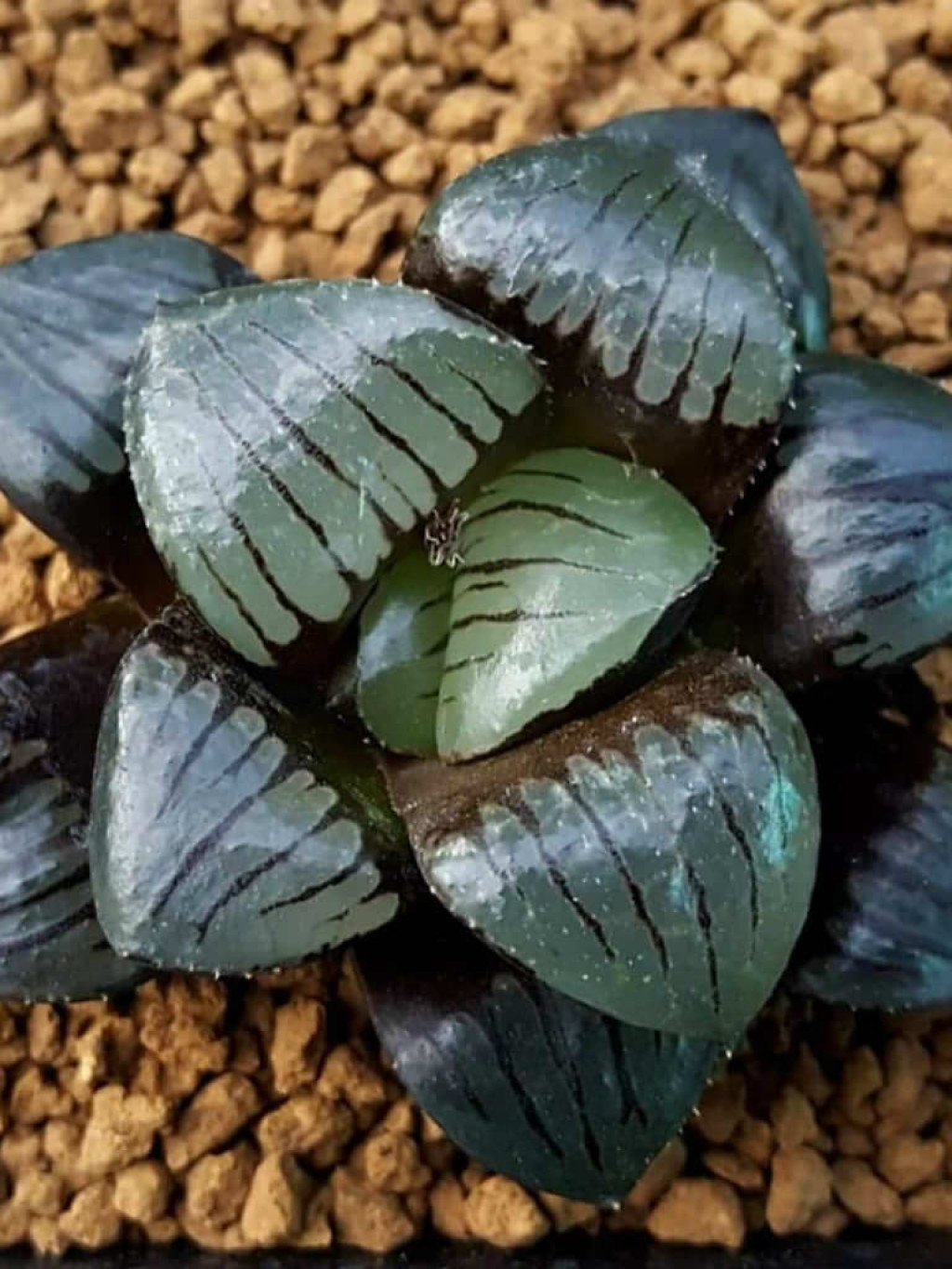 Haworthia 'Tropical Night' yaprakları kalın, su depolayabilen ve sert dokulu yapıdadır. Yaprak yüzeyinde hafif kabartılar, saydam pencere dokuları ya da türe bağlı ince desenlenmeler görülebilir. Yaprak uçları sivri veya hafif yuvarlak olabilir. Renkler çoğunlukla koyu yeşil, zeytin yeşili, kahverengimsi yeşil veya morumsu gölgeler şeklinde tarif edilir. Güçlü aydınlık altında pigment yoğunluğu artabilir ve bitki daha karakteristik görünüm kazanabilir. Yetersiz ışıkta ise yapraklar uzayabilir, renkler solabilir ve rozet sıkılığı azalabilir. Bu nedenle formunu koruması için doğru ışık dengesi önemlidir.