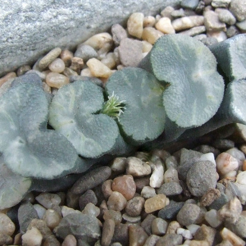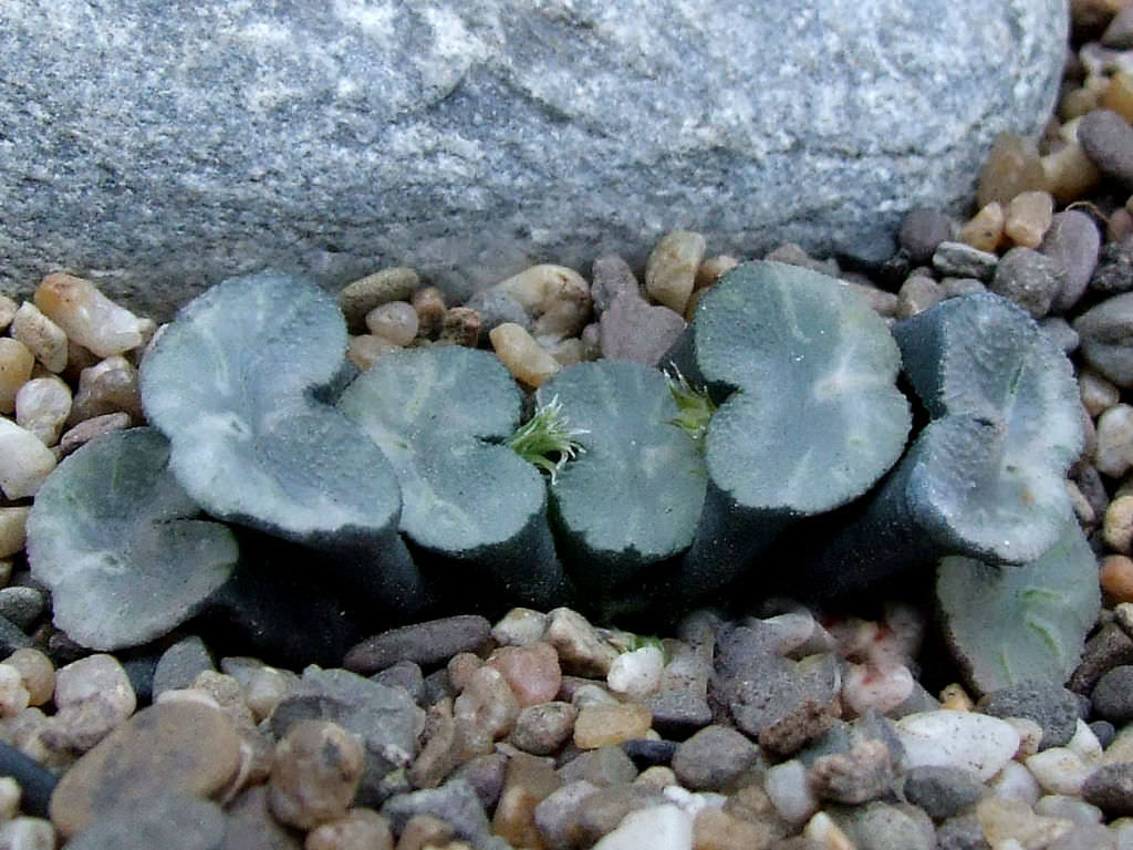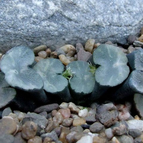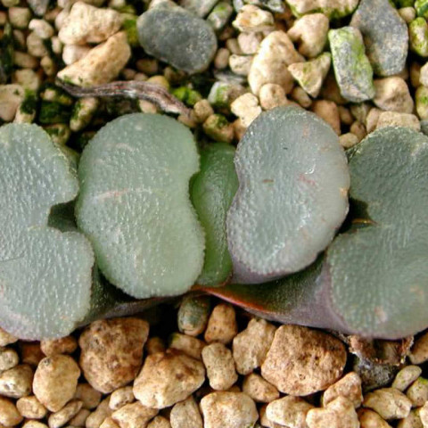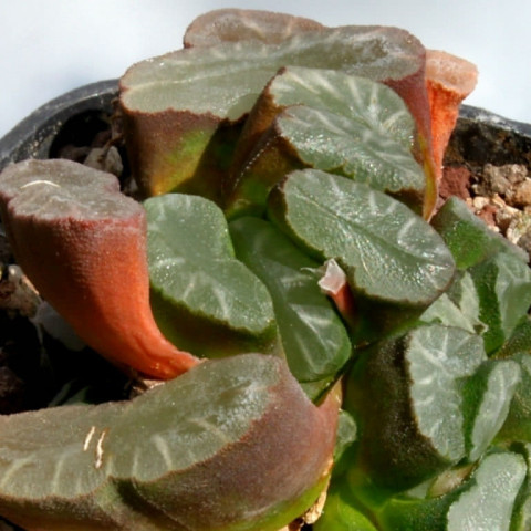 Haworthia truncata f. crassa’nın en belirgin özelliği kalın ve küt yaprak yapısıdır. Yapraklar kısa, geniş, etli ve üst kısmı düz kesilmiş gibi sonlanan yapıdadır. Klasik rozet düzeninden farklı olarak yapraklar çoğu zaman karşılıklı sıralar halinde gelişir. Bu dizilim, bitkiye taş gibi duran düzenli ve heykelsi bir görünüm kazandırır. Yaprak uçlarındaki pencere alanları ışığı geçirir ve bu bölgelerde ince çizgiler, damar izleri veya mat cam benzeri desenler görülebilir. Yaprakların yan yüzeyleri daha koyu, daha opak ve daha sert dokuludur. Crassa formunda yaprak hacmi daha belirgin olduğu için susuzluk, kök kaybı veya fazla sulama belirtileri yaprak dolgunluğunda hızlı değişim olarak fark edilebilir. Sağlıklı yapraklar sıkı, dolgun ve kolay ezilmeyen yapıda kalmalıdır.