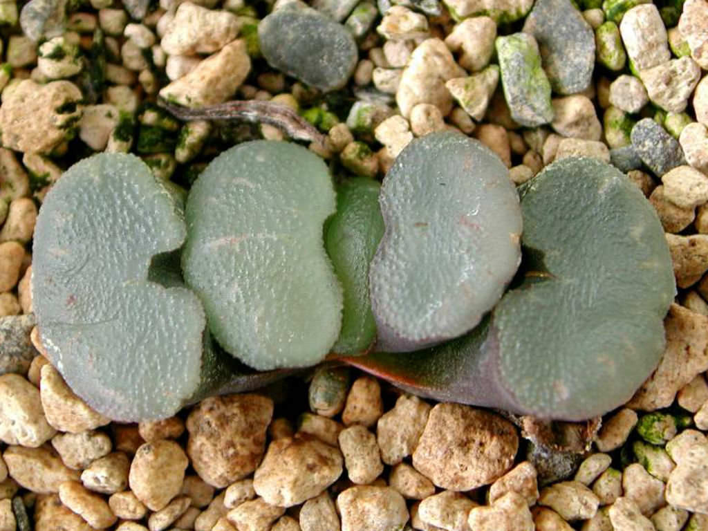 Haworthia truncata f. crassa, klasik Haworthia truncata formundan daha kalın, daha geniş ve daha etli yapraklarıyla ayrılan dikkat çekici bir formdur. Haworthia truncata var. maughanii ve Haworthia truncata arasında bir formdur. Bitki genellikle sıra halinde dizilen yaprak yapısını korur, fakat yaprakların kalınlığı nedeniyle daha basık, daha kompakt ve daha güçlü bir görünüm sergileyebilir. Yaprak uçlarındaki pencere dokusu gri-yeşil, mavimsi yeşil veya yarı saydam tonlarda olabilir. Sağlıklı bireylerde yapraklar sert-etli, dolgun ve düzenli dizilimlidir.