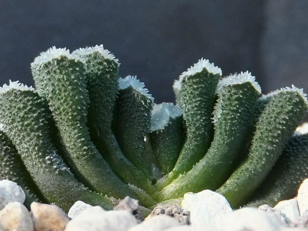 Haworthia truncata var. minor, klasik Haworthia truncata’nın daha küçük yapılı, kompakt gelişen ve kesik uçlu yaprak formunu daha minyatür ölçekte gösteren özel bir varyetesidir. Bu bitki, üst kısmı düz kesilmiş gibi görünen etli yaprakları, sıra halinde gelişen yaprak dizilimi ve yaprak uçlarında bulunan yarı saydam pencere dokusuyla tanınır. “Minor” ifadesi, bu formun daha küçük boyutlu gelişim karakterine işaret eder. Klasik Haworthia truncata’ya göre daha alçak, daha sık ve daha yavaş gelişen bir görünüm sergileyebilir. Sağlıklı bireylerde yapraklar dolgun, sert-etli, koyu yeşil veya mavimsi yeşil tonlarda olur. Yaprak uçlarındaki pencere alanları ise daha açık, gri-yeşil veya yarı saydam görünüm kazanabilir. Bu türün bakımında temel amaç, yaprakların dolgunluğunu, pencere dokusunun sağlıklı görünümünü ve sık dizilimli kompakt formu korumaktır.