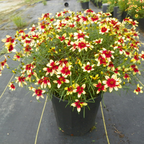 Coreopsis ‘Route 66’, Asteraceae familyasına ait, çok yıllık ve otsu yapılı bir süs bitkisidir. Coreopsis cinsinin modern ve dekoratif kültivarlarından biridir ve özellikle iki renkli çiçek yapısı ile öne çıkar. Bitki kompakt ve dengeli bir büyüme formuna sahiptir. Olgun bireyler genellikle 45–65 cm boya ulaşır ve yatay yönde dolgun bir görünüm oluşturur. Gövde yapısı sağlamdır ve çiçeklenme döneminde yatma eğilimi göstermez. ‘Route 66’, bordür düzenlemelerinde, çiçek tarhlarında ve saksı yetiştiriciliğinde yaygın olarak kullanılır. Uzun süreli çiçeklenmesi ve çevresel koşullara uyum yeteneği, bu kültivarı düşük bakım gerektiren süs bitkileri arasında konumlandırır.