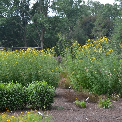 Coreopsis tripteris ‘Gold Standard’, Asteraceae familyasına ait, çok yıllık ve otsu yapılı bir süs bitkisidir. Doğal yayılım alanı Kuzey Amerika’nın açık çayırları ve orman kenarlarıdır. Bu kültivar, Coreopsis cinsi içerisinde boylu yapısı ile öne çıkar. Uygun koşullarda 120–180 cm yüksekliğe ulaşabilir. Bitki dik büyüme eğilimindedir ve güçlü bir ana gövde yapısına sahiptir. ‘Gold Standard’, uzun boyu sayesinde arka plan bitkisi olarak peyzaj düzenlemelerinde sıklıkla kullanılır. Dayanıklı yapısı ve uzun ömürlü olması, bu türü düşük bakım gereksinimi olan bitkiler arasında konumlandırır. Doğal görünümlü bahçeler ve geniş alan düzenlemeleri için uygundur. Coreopsis tripteris ‘Gold Standard’ yaprakları tür adından da anlaşılacağı üzere üç parçalı bir yapı sergiler. Yapraklar derin dilimli, ince ve uzun formdadır. Yaprak dizilimi genellikle almaşıktır. Yaprak yüzeyi pürüzsüzdür ve belirgin damar yapısına sahiptir. Renkleri orta ile koyu yeşil tonları arasında değişir. Alt yapraklar daha geniş ve parçalı iken üst gövdeye doğru yapraklar daralır. Bu yapı, bitkinin boylu formuna hafiflik kazandırır ve rüzgâra karşı esneklik sağlar. Yapraklar, yeterli ışık alan ortamlarda daha yoğun ve sağlıklı gelişim gösterir.