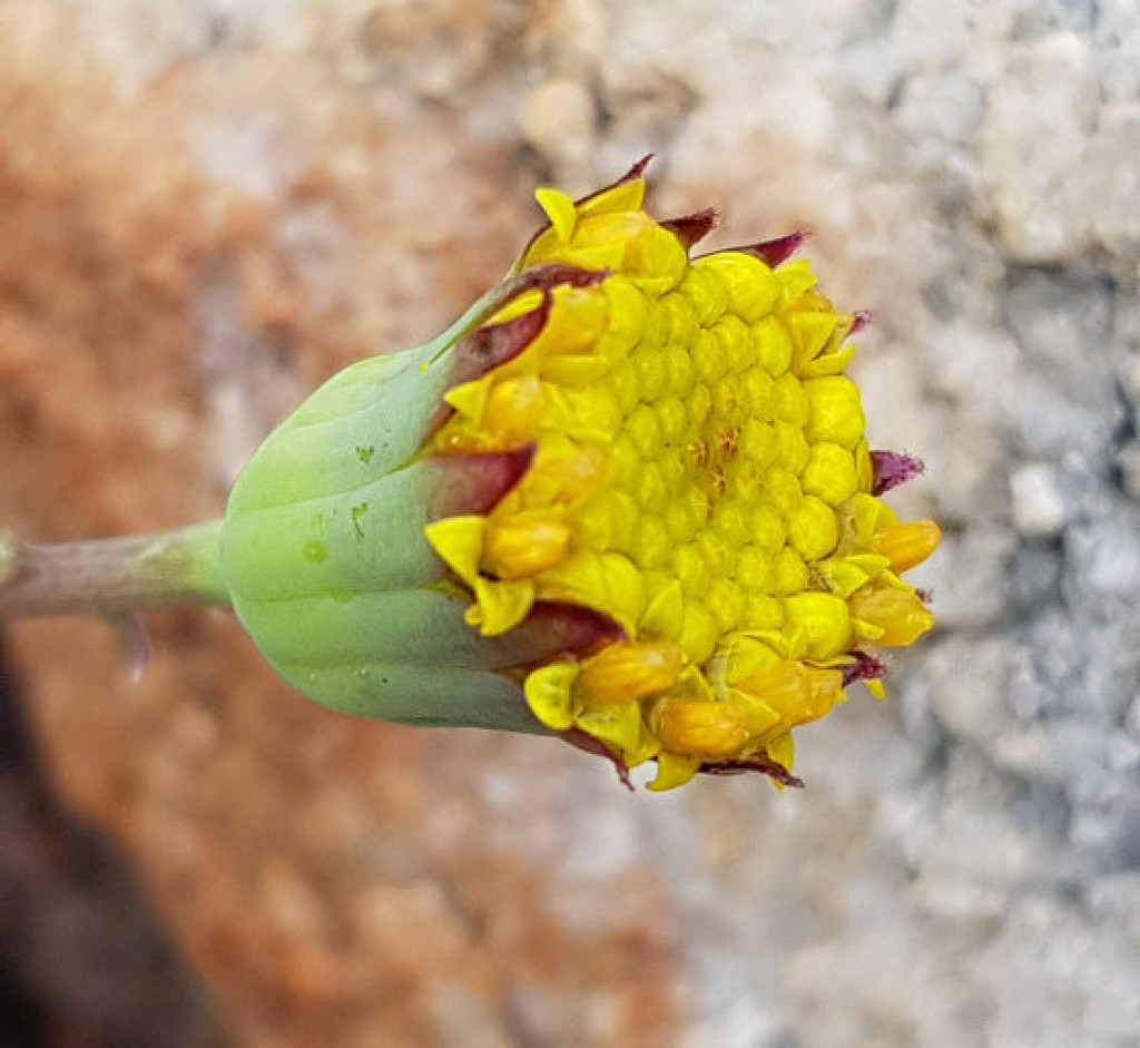 Othonna gymnodiscus, Asteraceae familyasına ait, Güney Afrika kökenli bir sukulenttir. Doğal yayılış alanlarında genellikle taşlık, mineral ağırlıklı ve iyi drene olan kurak bölgelerde gelişim gösterir. Bu habitat koşulları, bitkinin suyu gövdesinde depolayabilen özel bir yapı geliştirmesine olanak tanımıştır. Büyüme hızı yavaştır ancak uygun bakım koşullarında uzun yıllar formunu koruyabilir. Yapraklar etli ve su tutma kapasitesi yüksek yapıdadır. Yaprak formu genellikle ovalden spatül şekline kadar değişir. Yaprak yüzeyi pürüzsüzdür ve ince mumsu bir tabaka ile kaplıdır. Bu tabaka buharlaşmayı azaltarak bitkinin nem dengesini korur. Yaprak rengi açık yeşilden gri-yeşile kadar değişebilir. Işık yoğunluğuna bağlı olarak yapraklarda ton koyulaşması görülebilir. Dinlenme dönemlerinde yaprak sayısında azalma veya geçici yaprak dökümü gözlemlenebilir ve bu durum fizyolojik olarak normal kabul edilir. Çiçeklenme, Othonna gymnodiscus’ta genellikle ilkbahar aylarında görülür. Çiçekler gövdeden çıkan ince ve uzun sapların ucunda açar. Asteraceae familyasına özgü papatya benzeri yapıdadır. Çiçek rengi çoğunlukla parlak sarıdır. Çiçekler kısa ömürlüdür ancak disk formundaki gövde ile güçlü bir görsel kontrast oluşturur. Çiçeklenme, bitkinin sağlıklı geliştiğinin göstergesi olarak kabul edilir.