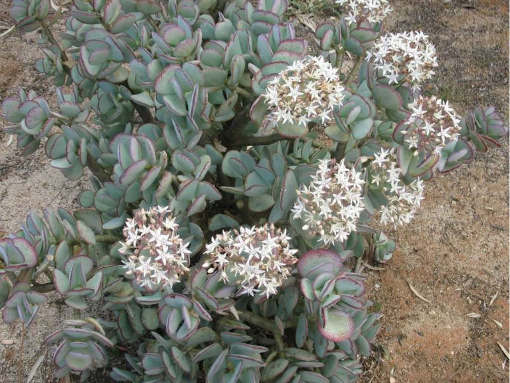 Crassula arborescens, Crassulaceae familyası içinde yer alan, gövde formu belirgin ve odunsu yapı geliştirebilen sukulent türlerinden biridir. Doğal yayılış alanı Güney Afrika’nın yarı kurak bölgeleridir. Bu bölgelerde bitki, taşlık ve iyi drene olan topraklarda gelişir. Zamanla kalınlaşan ana gövde, yan dallar oluşturarak çalımsı bir siluet kazanır. Uygun koşullarda metreye yaklaşabilen bir boya ulaşabilir. Gövde dokusu genç dönemlerde etli yapı gösterirken, yaş ilerledikçe daha sert ve odunsu hale gelir. Bu özellik, türün uzun ömürlü ve formunu koruyabilen bir sukulent olmasını sağlar.