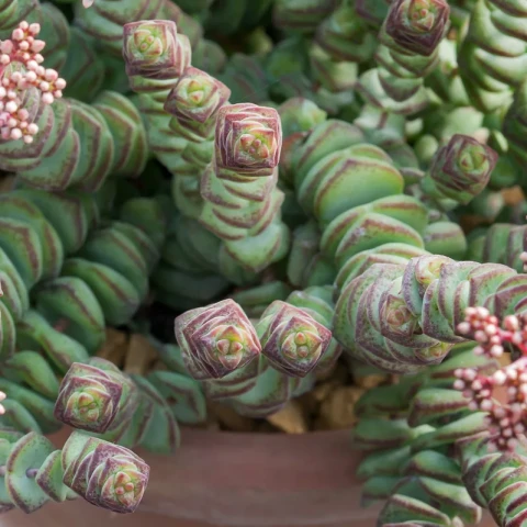 Crassula ‘Baby’s Necklace’, Crassulaceae familyasına ait, boncuk dizisini andıran yaprak dizilimiyle tanınan bir sukulent kültivarıdır. Crassula 'Baby's Necklace', Myron Kimnach tarafından 1962'de yaratılan bir türdür. Crassula marnieriana ve Crassula perforata subsp. kougaensis türlerinin çaprazlanması sonucu elde edilmiştir. Çiçeklenme döneminde Crassula ‘Baby’s Necklace’, gövde uçlarından yükselen ince çiçek sapları üzerinde küçük, yıldız formunda çiçekler oluşturur. Çiçekler beyaz renkte ve salkım hâlinde açar. Çiçeklenme kısa sürelidir.
