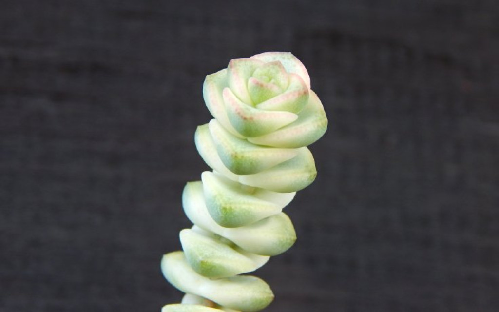 Gövde yapısı silindirik, etli ve segmentlidir. Boğum aralıkları kısa olduğu için yapraklar gövde boyunca üst üste dizilmiş görünüm oluşturur. Bu dizilim, bitkiye kolye ya da zincir benzeri bir siluet kazandırır. Genç sürgünler daha kompakt ve sıkı yapıdayken, yaş ilerledikçe gövdelerde hafif uzama görülebilir. Gövde yüzeyi pürüzsüzdür ve tüylenme içermez. Alt kısımlarda zamanla hafif sertleşme oluşabilir ancak belirgin bir odunsu doku gelişmez. Yapraklar küçük, etli ve üçgenimsi ile kısa oval form arasında değişkenlik gösterir. Yapraklar gövdeyi kısmen saran şekilde karşılıklı dizilir. Yaprak yüzeyi düz ve mattır. Crassula ‘Baby’s Necklace Variegata’’nın en ayırt edici özelliği, yapraklardaki alacalı renk dağılımıdır. Yeşil alanlar fotosentezin ana merkezini oluştururken, krem ve sarımsı bölgeler ışığa karşı daha hassastır. Bu nedenle her yaprakta desen yoğunluğu farklı olabilir. Güçlü ışık koşullarında yaprak kenarlarında pembe, kırmızı ya da morumsu tonlar belirginleşebilir. Yaprak alt yüzeyi üst yüzeye göre daha açık renklidir ve variegasyon alt yüzde daha silik şekilde devam eder.