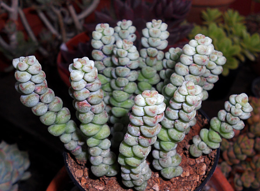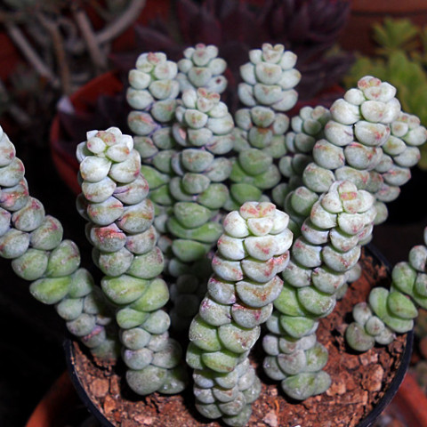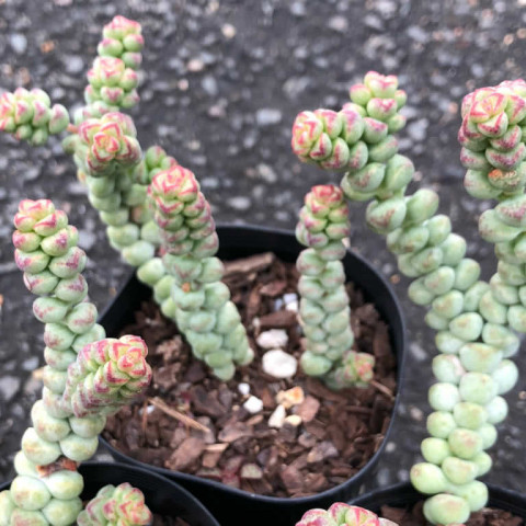 Çoğaltma en yaygın olarak gövde çeliği yöntemiyle yapılır. Sağlıklı bir sürgün ana bitkiden ayrılır, kesik yüzey birkaç gün kurutulur ve geçirgen bir toprak karışımına dikilir. Gövde çelikleri uygun koşullarda köklenmeye yatkındır. Yaprak çeliği ile çoğaltma mümkündür ancak gelişim süreci daha yavaş ilerler. Köklendirme döneminde sulama minimum düzeyde tutulmalıdır. Besin ihtiyacı düşüktür. Gübreleme yalnızca ilkbahar döneminde, düşük dozda ve seyrek aralıklarla yapılmalıdır. Sukulentler için özel olarak üretilmiş, düşük azotlu gübreler tercih edilmelidir. Aşırı besleme, gövde dokusunun gevşemesine ve bitkinin doğal formunun bozulmasına yol açabilir.