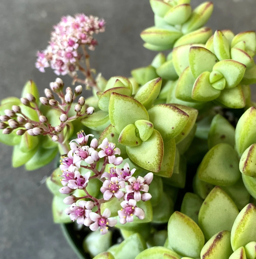 Crassula brevifolia üretimi çoğunlukla gövde çeliği ile gerçekleştirilir. Bitkinin dallanan yapısı, çelikle çoğaltmayı kolaylaştırır. Sağlıklı bir sürgün kesilerek birkaç gün açıkta bekletilir ve kesik yüzeyin kuruması sağlanır. Kuruyan çelik, geçirgen bir toprak karışımına dikilir. Köklendirme sürecinde sulama minimum seviyede tutulur. Yaprak çeliği ile üretim mümkündür ancak gövde çeliğine kıyasla başarı oranı daha düşüktür. Köklendirme döneminde yüksek nemden kaçınılmalıdır. Gübreleme yalnızca ilkbahar döneminde ve düşük dozda yapılmalıdır. Sukulentler için özel olarak üretilmiş gübreler tercih edilmelidir. Yüksek azot içeren gübreler, yaprakların aşırı büyümesine ve bitkinin kompakt formunun bozulmasına neden olabilir. Ölçülü gübreleme, dengeli ve sağlıklı büyümeyi destekler. Crassula brevifolia çiçeklenme özelliği gösteren bir türdür. Çiçekler genellikle ilkbahar sonu ile yaz başında ortaya çıkar. Küçük, yıldız formunda açık pembe tonlardaki çiçekler, ince çiçek sapları üzerinde kümeler halinde gelişir. Çiçeklenme süresi kısa olmakla birlikte, bitkinin yeterli ışık alması ve genel sağlık durumunun iyi olması halinde düzenli olarak gözlemlenebilir.