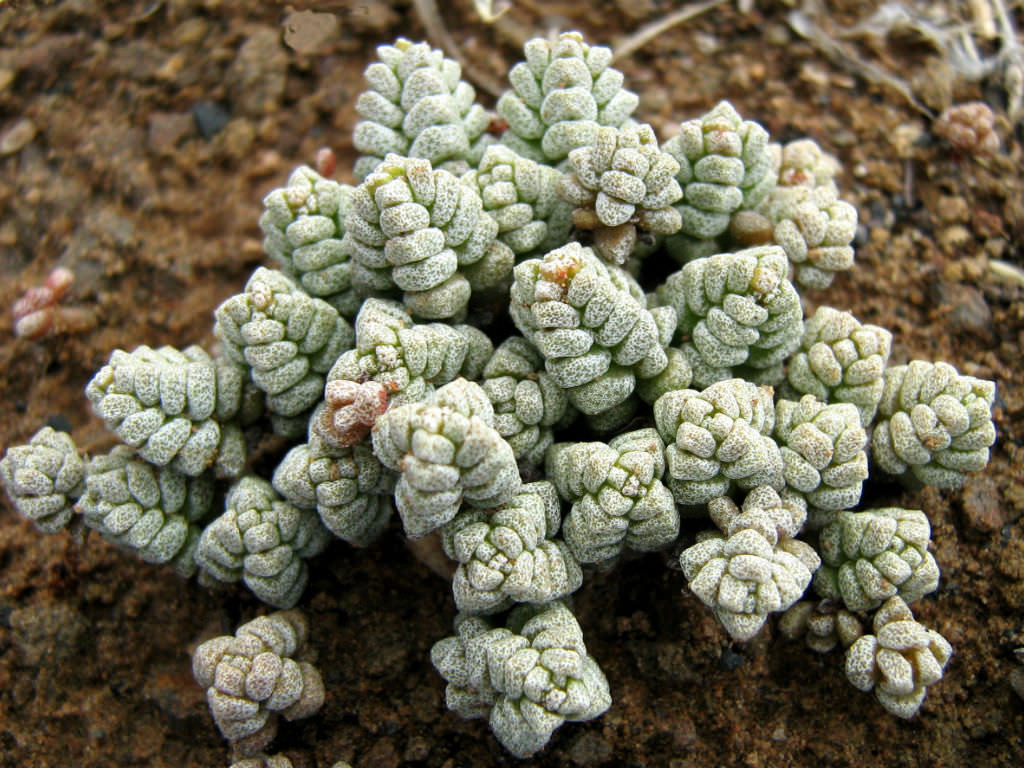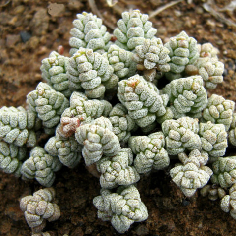 Crassula corallina, Crassulaceae familyasına ait, morfolojik olarak oldukça ayırt edici ve nadir görülen sukulent türlerinden biridir. Doğal yayılış alanı Güney Afrika’nın yarı kurak ve taşlık bölgeleriyle sınırlıdır. Tür, genellikle kayalık yüzeyler, ince mineral topraklar ve drenajı yüksek alanlarda gelişim gösterir. Doğada küçük kümeler hâlinde bulunur ve çevresel koşullara güçlü adaptasyon yeteneği sergiler. Gövde yapısı kısa, sık ve dallanmaya meyilli olup bitki zamanla yoğun bir yastık formu oluşturabilir.