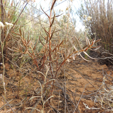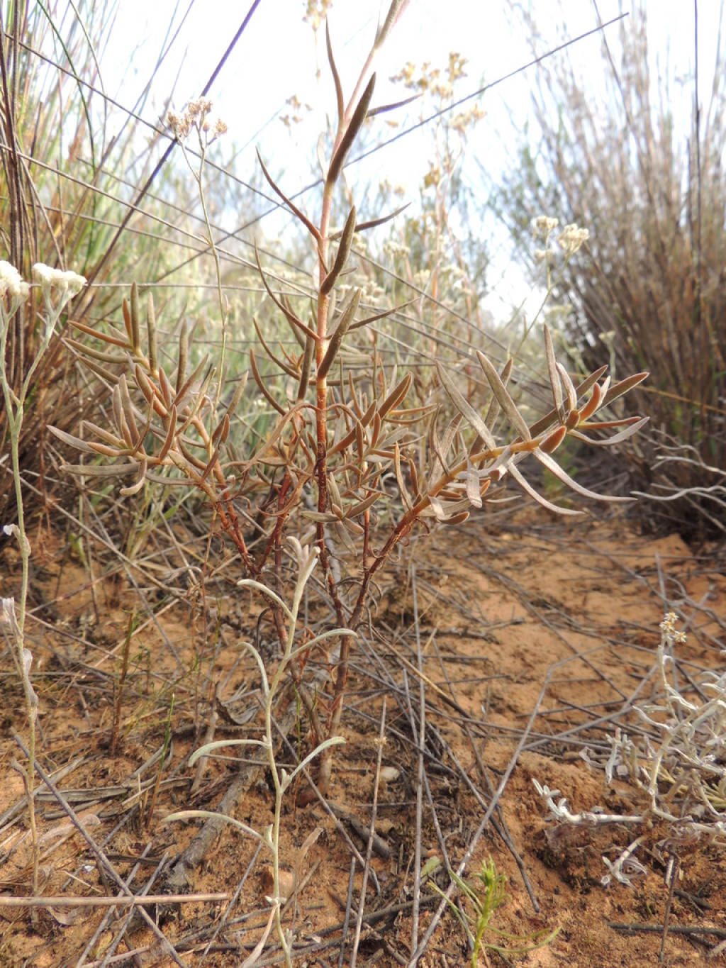 Crassula cymosa, Crassulaceae familyasına ait, doğal olarak Güney Afrika’nın yarı kurak ve açık arazilerinde yayılış gösteren çok yıllık bir sukulent türüdür. Tür, adını çiçeklenme biçiminden alır ve doğada genellikle ince gövdeli, yarı dik ya da hafif yayılıcı bir gelişim sergiler. Kumlu, taşlı ve besin değeri düşük topraklarda yaşayabilmesi, bu türün kuraklığa uyumlu yapısını açıkça ortaya koyar. Doğal ortamında çoğunlukla açık alanlarda, çalı aralarında veya düşük ot örtüsü bulunan bölgelerde gelişir. Crassula cymosa’nın gövde yapısı ince, esnek ve zamanla odunsu hale gelir. Bitki, tabandan dallanarak yukarı doğru uzayan sürgünler oluşturur. Yapraklar etli ancak kalın yapılı değildir; dar, uzun ve mızraksı formdadır. Yaprak uçları sivridir ve yüzeyleri genellikle mat görünümdedir. Renkleri kahverengimsi tonlarda olabilir.