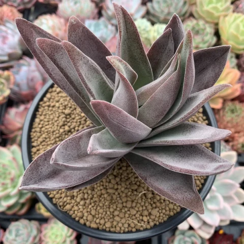 Toprak ve saksı seçimi, drenajın kusursuz olması esasına dayanmalıdır. Bu tür, suyu bünyesinde tutmayan, mineral bakımından zengin ve havadar karışımlarda en sağlıklı gelişimi gösterir. Hazır kaktüs topraklarına ekstra pomza, lav taşı veya perlit eklenerek karışımın geçirgenliği artırılmalıdır. Saksı seçiminde, toprağın nefes almasını sağlayan ve fazla nemi dışarı atan gözenekli yapıdaki toprak (terrakotta) saksılar en güvenli tercihtir. Saksının altında mutlaka drenaj delikleri bulunmalıdır. Bitkinin rozeti genişleyebileceği için, kök hacminden çok daha geniş olmayan ancak bitkinin ağırlığını dengeli bir şekilde taşıyabilecek saksılar tercih edilmelidir. Saksı değişimi ihtiyacı genellikle 2 yılda bir, ilkbahar döneminde ortaya çıkar.