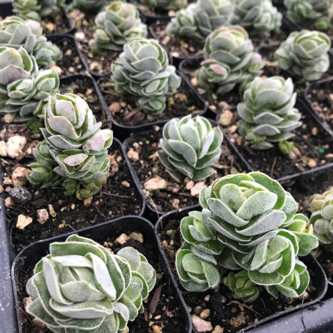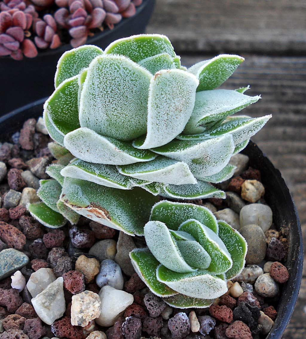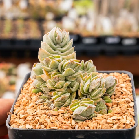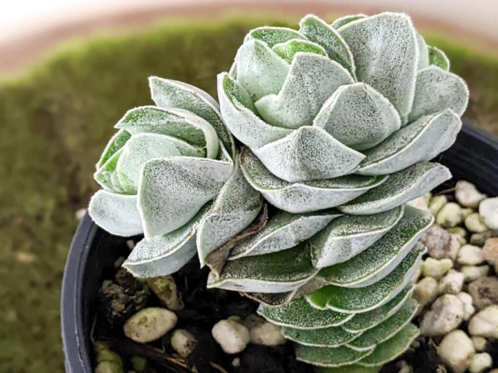 Crassula ‘Ivory Pagoda’, Crassulaceae familyası içinde yer alan, yaprak dizilimi ve yüzey dokusuyla ayırt edilen bir türdür. Crassula perfoliata var. minor ve Crassula barklyi türlerden oluşmuştur. Gelişimi genellikle yavaş ve kontrollüdür. Uygun koşullar sağlandığında uzun yıllar boyunca formunu koruyabilen, koleksiyon değeri yüksek bir bitki olarak değerlendirilir. Büyüme alışkanlığı dikey yönde katmanlı bir yapı oluşturmaya eğilimlidir. Crassula ‘Ivory Pagoda’nın yaprakları kalın, etli ve yoğun su depolama kapasitesine sahiptir. Üst üste dizilen yapraklar, pagoda benzeri katmanlı bir siluet oluşturur. Yaprak yüzeyi kadifemsi ve ince tüylerle kaplıdır; bu yapı ışığı yumuşak biçimde yansıtarak bitkiye mat bir görünüm kazandırır. Renklenme çoğunlukla açık yeşil ile gri-yeşil arasında değişir. Yüzeydeki yoğun tüylenme nedeniyle yapraklar fildişini andıran açık bir ton algısı oluşturur. Güçlü ışık altında yaprak kenarlarında çok hafif krem veya soluk sarımsı geçişler görülebilir.
