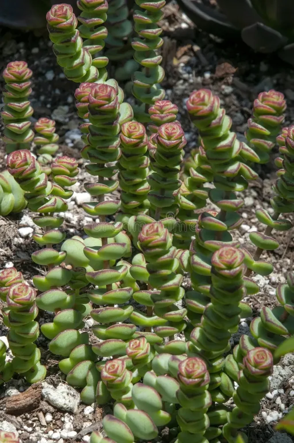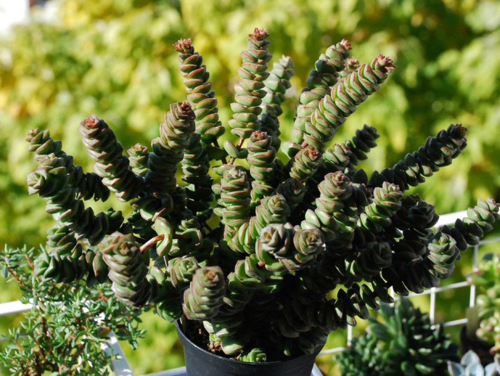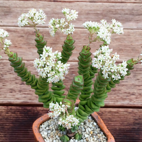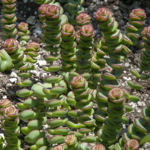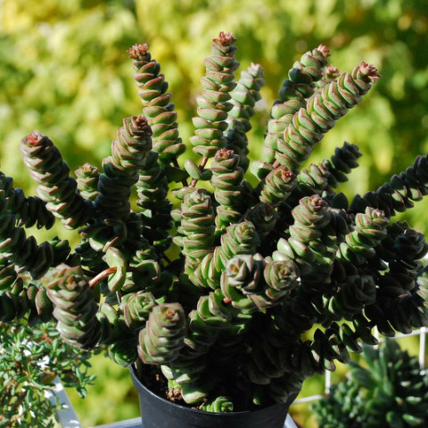 Crassula 'Jade Necklace', sukulent dünyasında "Yeşim Kolye" olarak da bilinen hibrit bir türdür. Crassula perfoliata var. minor ve Crassula marnieriana türlerinin çaprazlanmasıyla elde edildiği kabul edilir. Bu bitki, merkezi bir gövde üzerine dizilmiş, birbirine çok yakın ve karşılıklı duran etli, yuvarlak yapraklardan oluşur. Yapraklar gövde tarafından adeta bir ipe dizilmiş boncuklar gibi bir görüntü sergiler. Bu benzersiz morfoloji, bitkiye dikey bir sütun veya aşağı doğru sarkan bir kolye görünümü kazandırır. Zamanla ağırlaşan gövdeler saksı kenarlarından sarkarak, asılı saksılar ve dikey bahçeler için mükemmel bir görsel doku oluşturur.