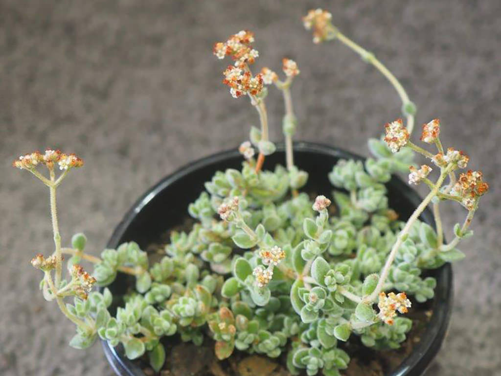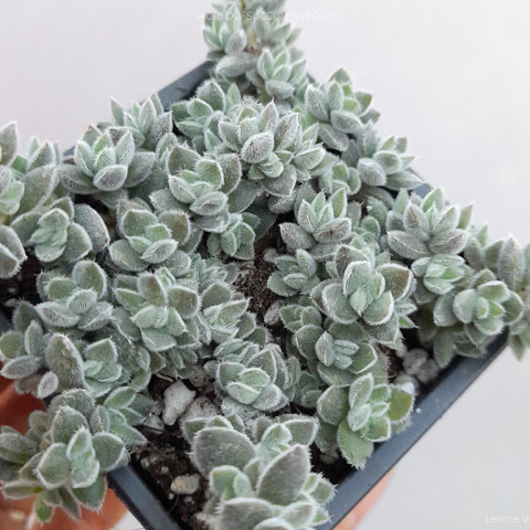 Crassula lanuginosa var. pachystemon, Crassulaceae familyası içerisinde yer alan Crassula lanuginosa türünün, gövde yapısı ve genel morfolojisiyle ayrışan bir varyetesidir. Doğal yayılımı Güney Afrika’nın kurak ve yarı kurak bölgelerine uzanır. Bu varyete, çoğunlukla taşlı yamaçlarda, mineral ağırlıklı ve organik maddesi düşük zeminlerde gelişir. Düzensiz yağış rejimine sahip bu habitat, bitkinin hem yaprak hem de gövde dokularında suyu verimli şekilde depolayabilen bir yapı geliştirmesine neden olmuştur. Pachystemon varyetesi, adından da anlaşılacağı üzere, görece kalınlaşmış sürgün yapısıyla ana formdan ayrılır. Bitki genellikle yataydan yarı dik gelişim gösterir ve zamanla tabandan dallanarak yayılma eğilimi sergiler. Gövdeler belirgin biçimde etli ve kalındır. Gövde yüzeyi yoğun biçimde ince, yumuşak tüylerle kaplıdır. Yaşlı bireylerde alt kısımlarda sınırlı sertleşme görülebilir ancak belirgin bir odunsu yapı oluşmaz. Çiçeklenme döneminde bitki, gövde uçlarından yükselen ince çiçek sapları üzerinde küçük, yıldız formunda çiçekler oluşturur. Çiçekler genellikle beyazdan soluk pembe tonlarına kadar değişir.