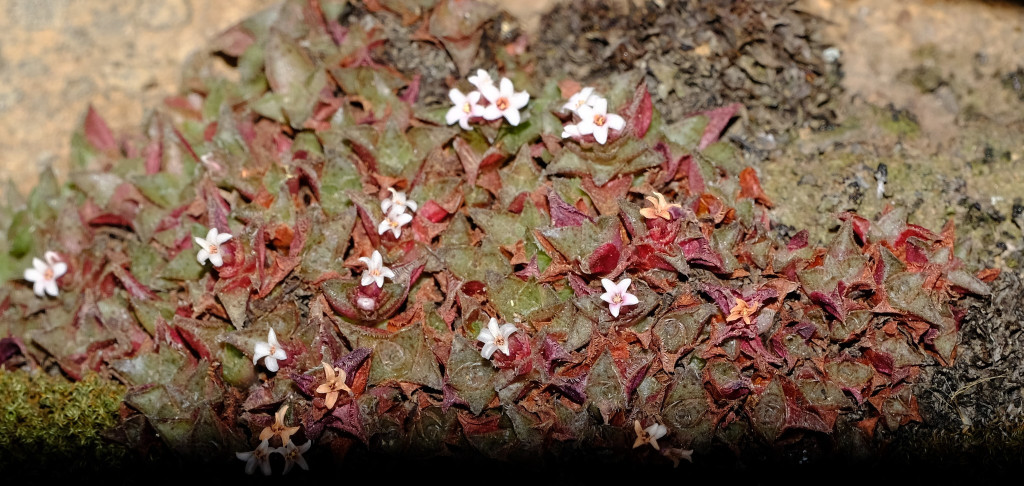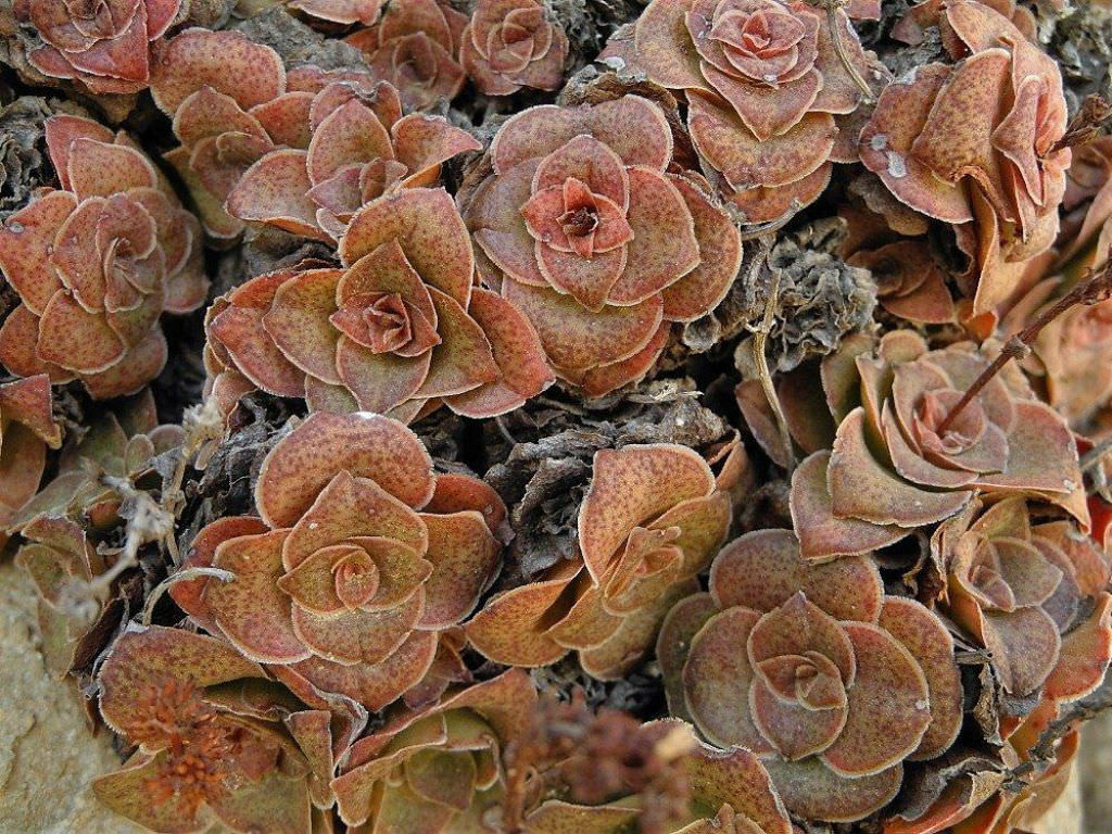 Crassula montana, Güney Afrika’nın dağlık ve kayalık bölgelerine özgü, kompakt yapılı bir Crassula türüdür. Bitki düşük boylu, sık dallanan ve yere yakın büyüyen bir form sergiler. Yapraklar karşılıklı dizili, küçük, etli ve ovalden hafif sivri forma kadar değişkenlik gösterir. Yüzeyleri pürüzsüzdür ve iyi ışık koşullarında yeşil tonların yanında kızılımsı veya bronz yansımalar kazanır. Genel görünümü düzenli, yoğun ve dengelidir.