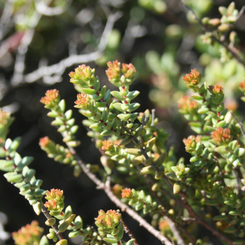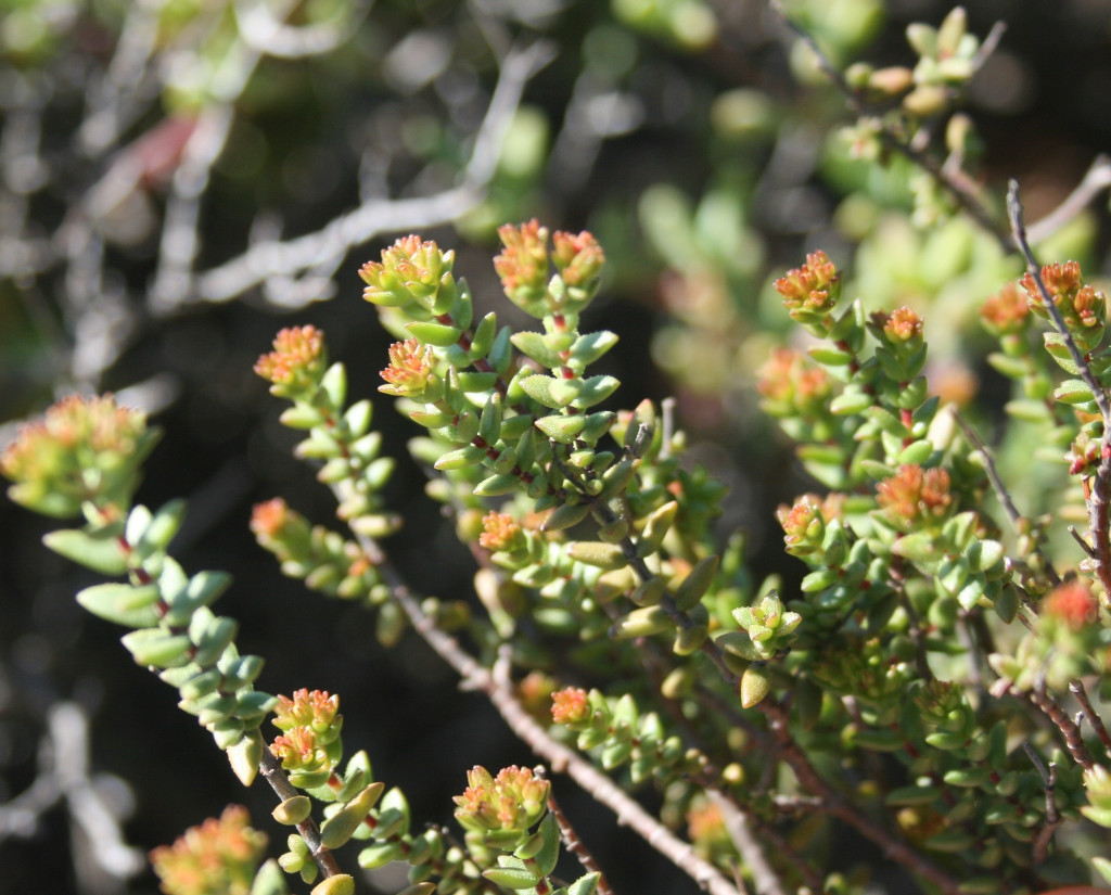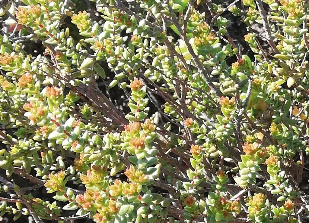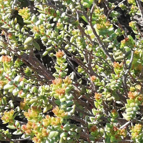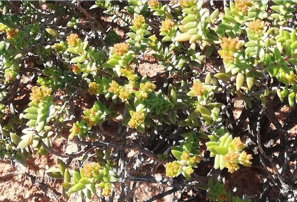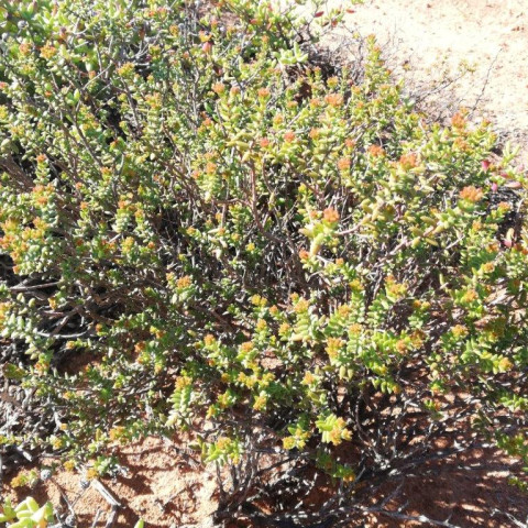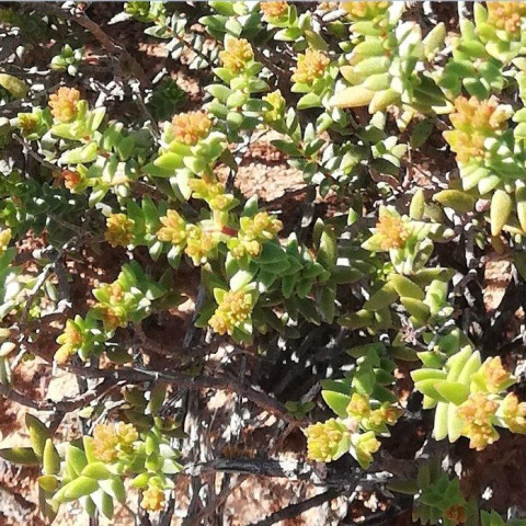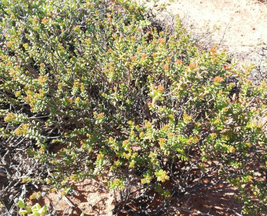 Crassula muricata, Güney Afrika kökenli, ince gövdeli ve yüzeyi pütürlü (siğilimsi) yapraklarıyla tanınan, zarif görünümlü bir Crassula türüdür. Doğada taşlı, iyi drene olan alanlarda yayılış gösterir ve çoğunlukla yarı dik–yayılıcı bir gelişim sergiler. Gövdeler zamanla uzar; yapraklar karşılıklı dizilerek gövde boyunca ritmik bir yapı oluşturur. Yaprak yüzeyindeki belirgin pütürler türün ayırt edici özelliğidir ve ışıkla birlikte dokusu daha belirgin hâle gelir.