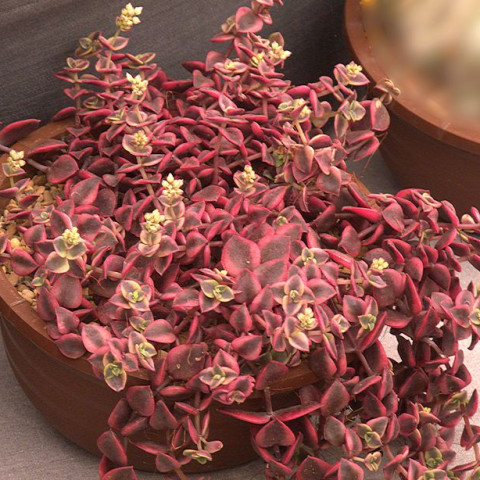Crassula pellucida subsp. marjinal f. rubra Crassula pellucida subsp.'nin bir formudur. Marginalis morumsu pembe yapraklarından dolayı seçilmiştir. Rubra formu, özellikle yapraklarındaki pembe ve kırmızı renklerle diğer türlerden ayrılır. Bu bitki, doğru şartlar sağlandığında hızla yayılan, istilacı bir yapıya sahip olsa da ev ortamında kontrollü ve oldukça dekoratif bir gelişim sergiler. Crassula pellucida subsp. marginal f. rubra çiçekleri küçük boyutlu ve yıldız formundadır. Çiçekler genellikle beyaz tonlarda olup, ince çiçek sapları üzerinde küçük salkımlar hâlinde gelişir. Çiçeklenme dönemi, bitkinin yeterli ışık aldığı ve genel bakım koşullarının dengeli olduğu zamanlarda gerçekleşir. Çiçekler, bitkinin yayılıcı yapısına kıyasla daha narin bir görünüm sunar ve bitkinin olgunluk dönemine ulaştığının doğal bir göstergesi olarak değerlendirilir.