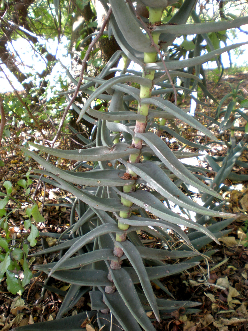 Crassula perforliata; dik gelişimli, çok yıllık ve etli gövdeli bir sukulenttir. Gövdeler silindirik yapıdadır ve yaşlandıkça kalınlaşarak yarı odunsu bir karakter kazanır. Yapraklar karşılıklı dizilimlidir ve gövdeyi tamamen saracak şekilde yerleşir. Yapraklar uzun, mızraksı ve etli yapıdadır. Uç kısımlar sivridir ve yaprak yüzeyi pürüzsüzdür. Renk genel olarak açık yeşilden gri-yeşile uzanır. Yoğun güneş alan doğal koşullarda yaprak kenarlarında hafif kızarıklıklar görülebilir. Çiçeklenme, uzun ve kalın bir çiçek sapı üzerinde gerçekleşir. Bu sap, yaprak rozetlerinin merkezinden yükselir. Çiçekler çok sayıda, küçük ve yıldız formundadır. Renkleri krem, açık sarı ve beyaz tonları arasında değişir. Çiçekler yoğun salkımlar oluşturarak bitkinin üst kısmında kubbemsi bir görünüm meydana getirir. Çiçeklenme genellikle sıcak ve aydınlık dönemlerde gözlemlenir ve bitkinin güçlü kök sistemi ile doğrudan ilişkilidir.