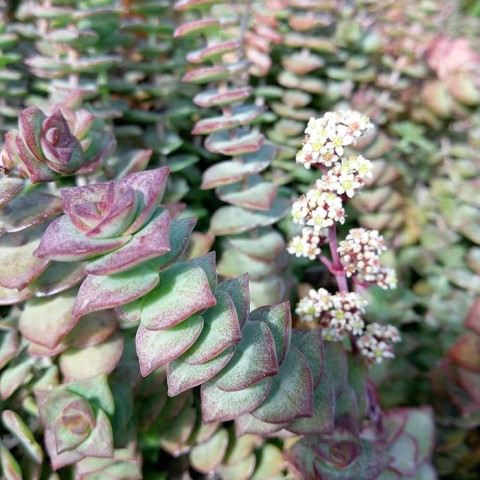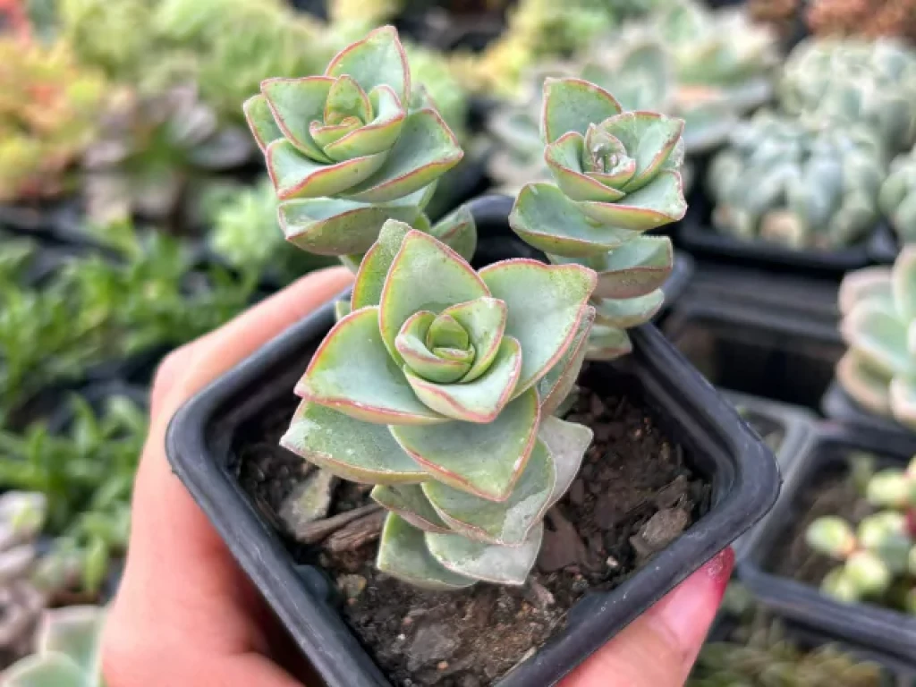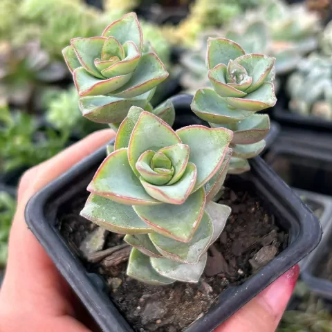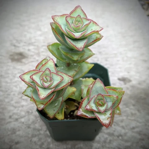 Sulama uygulamalarında temel ilke, toprağın tamamen kurumasını beklemektir. Sulama öncesinde yalnızca üst yüzeyin değil, saksının alt katmanlarının da kuru olduğundan emin olunmalıdır. Crassula perforata ‘Giant Form’, kısa süreli kuraklığa dayanıklıdır ancak sürekli nemli toprakta kök çürümesine yatkındır. Sulama sırasında yaprak tabanlarının ve gövde birleşim noktalarının ıslatılmaması önemlidir; bu bölgelerde biriken nem doku bozulmalarına neden olabilir. Çoğaltma en yaygın olarak gövde çeliği yöntemiyle yapılır. Sağlıklı ve güçlü bir sürgün ana bitkiden ayrılır, kesik yüzey birkaç gün kurutulur ve geçirgen bir toprak karışımına dikilir. Bu formda gövde çelikleri genellikle hızlı ve dengeli köklenme gösterir. Yaprak çeliği ile çoğaltma mümkündür ancak gelişim daha yavaş ilerler. Köklendirme sürecinde sulama minimum düzeyde tutulmalıdır.