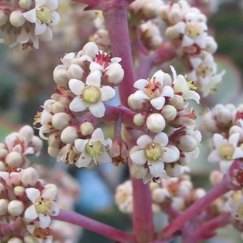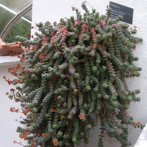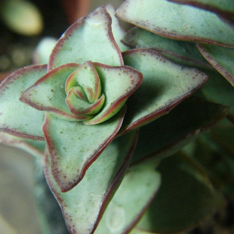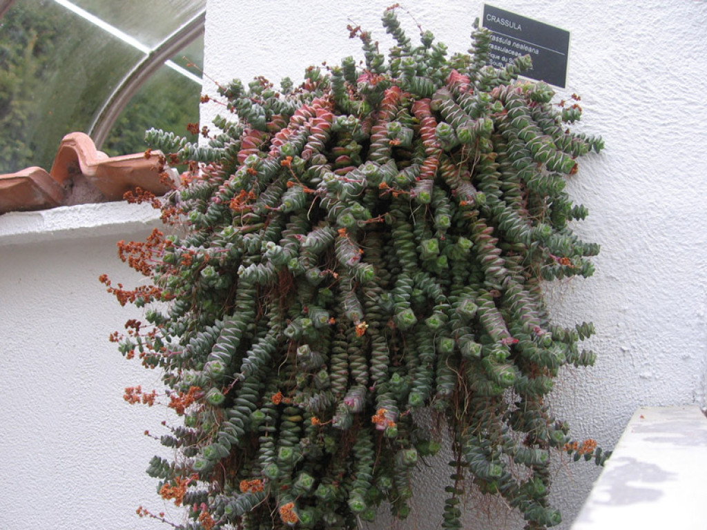 Crassula perforata subsp. kougaensis, Crassulaceae familyası içerisinde yer alan Crassula perforata sukulentin alt türüdür. Doğal yayılımı Güney Afrika’nın Kouga bölgesi ve çevresindeki yarı kurak alanlarla sınırlıdır. Bu coğrafyada bitki, çoğunlukla taşlı yamaçlarda, mineral ağırlıklı ve hızlı kuruyan topraklar üzerinde gelişir. Yağışların düzensiz olduğu bu habitat, alttürün suyu kısa sürede depolayan etli dokular geliştirmesine ve uzun süreli nemden kaçınan bir büyüme stratejisi kazanmasına neden olmuştur. Gelişim biçimi dik ya da yarı dik olup, zamanla tabandan dallanabilen bir yapı gösterir. Gövde yapısı silindirik, etli ve belirgindir. Boğum aralıkları, tipik Crassula perforata formlarına kıyasla daha dengeli ve düzenlidir. Gövdeler genç dönemde açık yeşil tonlardayken, yaşla birlikte gri-yeşil veya hafif sarımsı bir renge dönebilir. Gövde yüzeyi pürüzsüzdür ve tüylenme göstermez. Alt kısımlarda yaşlanmaya bağlı hafif sertleşme görülebilir ancak belirgin bir odunsu yapı oluşmaz. Çiçeklenme döneminde bitki, gövde uçlarından yükselen ince çiçek sapları üzerinde küçük, yıldız formunda çiçekler oluşturur. Çiçekler genellikle sarı tonlarında ve salkım hâlinde açar. Çiçeklenme süresi kısadır.
