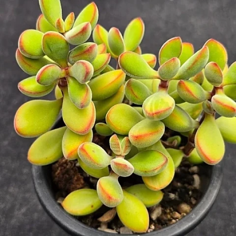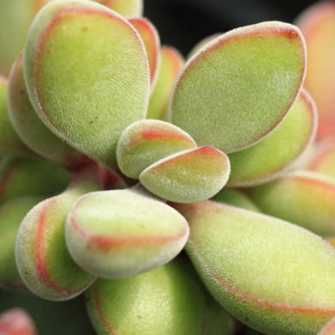 Crassula rogersii, Crassulaceae familyasına ait, yaprak yüzeyindeki ince tüylü doku ile ayırt edilen bir sukulent türüdür. Doğal yayılış alanı Güney Afrika’nın yarı kurak bölgeleridir. Bu bölgelerde bitki, düzensiz yağışlar, yüksek ışık şiddeti ve kısa süreli nem dönemlerine uyum sağlayacak biçimde evrimleşmiştir. Tür, çoğunlukla toprağa yakın gelişir ve zamanla yan sürgünler oluşturarak kümeler halinde büyür. Yaprakları küçük, etli ve oval ile hafif silindirik form arasında değişkenlik gösterir. Yaprak yüzeyi ince, kadifemsi bir tüylenme ile kaplıdır. Bu tüylenme, yaprağa mat bir görünüm kazandırır ve yoğun güneş ışığında yüzey sıcaklığının dengelenmesine yardımcı olur. Yaprak rengi çoğunlukla açık yeşil ile sarı-yeşil tonlarındadır. Yeterli ışık koşullarında yaprak uçları ve kenarları kırmızı, pembe ya da turuncuya yakın tonlara dönebilir. Bu renklenme, bitkinin ışık düzeyiyle doğrudan ilişkilidir. Yaprak dokusu su depolamaya uygun olduğu için uzun süreli ıslaklık durumunda yumuşama ve çürüme riski taşır. Gövde genellikle kısa ve etlidir; yaş ilerledikçe taban kısımlarında hafif sertleşme görülebilir.