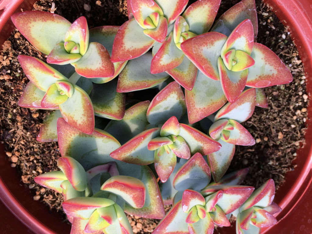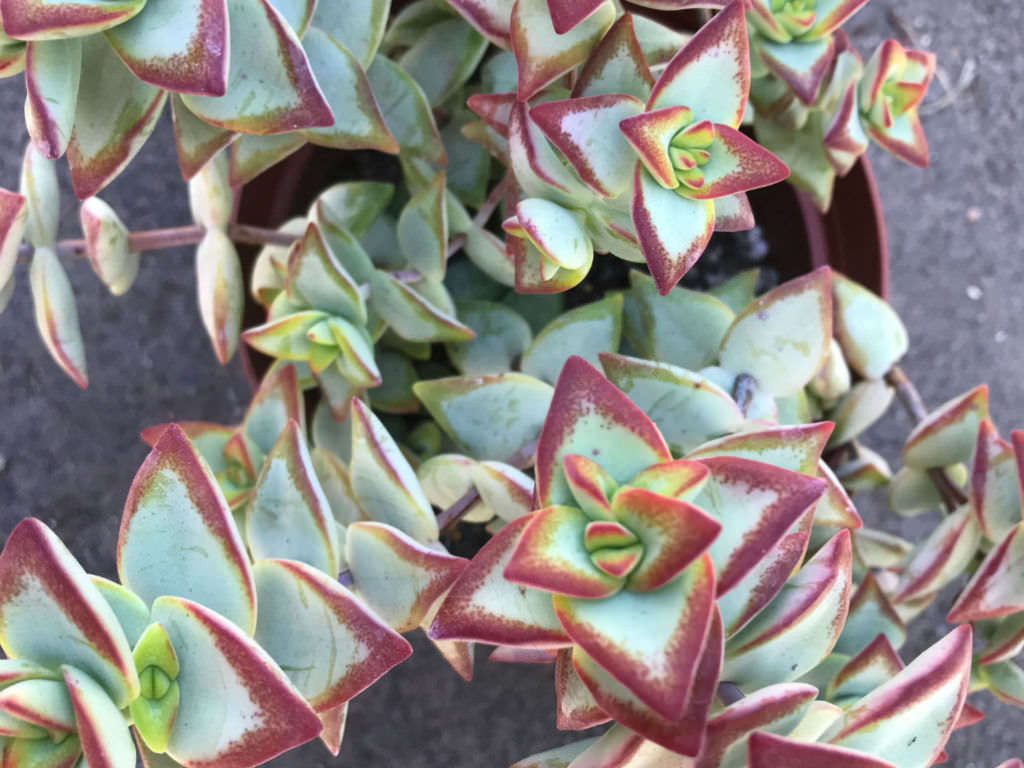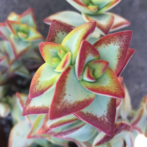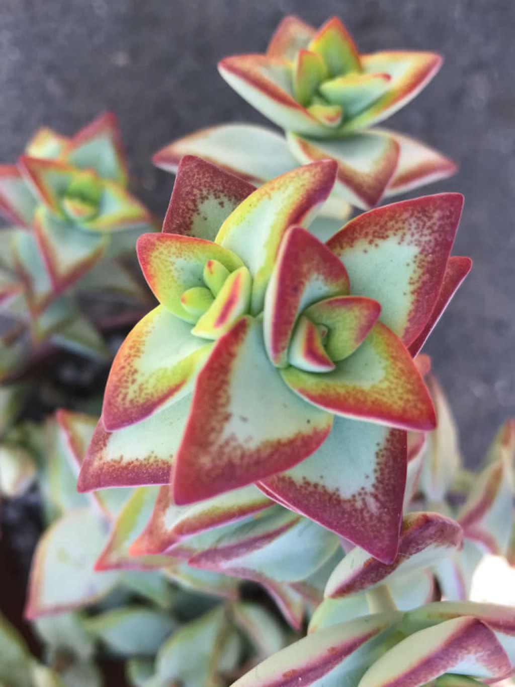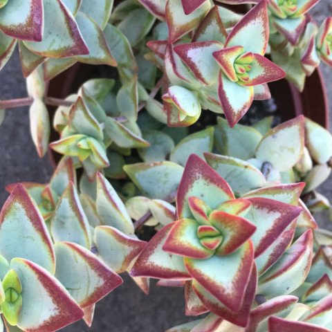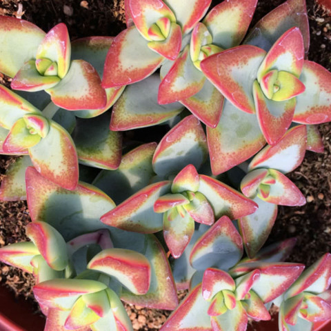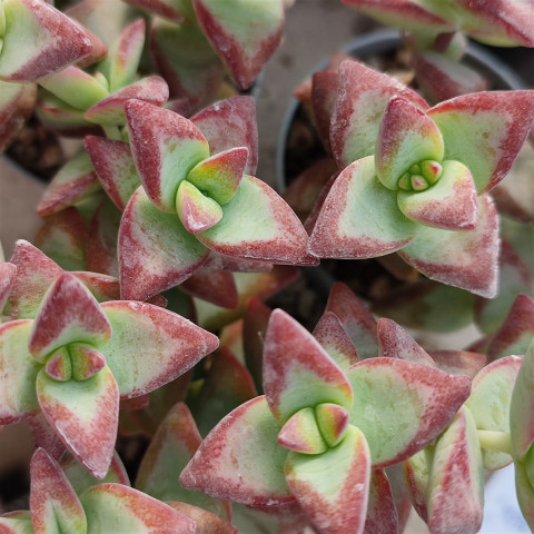 Crassula rupestris 'High Voltage', Crassulaceae familyasına ait olan Crassula rupestris türünün özel bir kültivarıdır. Bu bitki, ismini yaprak kenarlarında sergilediği parlak ve çarpıcı renklenmeden alır. Gövde üzerinde karşılıklı dizilen, üçgenimsi ve etli yaprakları, bir kolye üzerindeki boncuklar gibi üst üste binerek yükselen sütunlar oluşturur. 'High Voltage' varyetesi, standart türlere göre daha canlı renk geçişlerine sahiptir; gümüşi-yeşil zemin üzerindeki yaprak kenarları, ışık stresine bağlı olarak parlak pembe, sarı veya kırmızı tonlara bürünür. Zamanla tabandan dallanarak yayılan veya saksı kenarlarından sarkan bir form geliştirir, bu da onu hem dikey saksılar hem de asılı sepetler için ideal kılar.