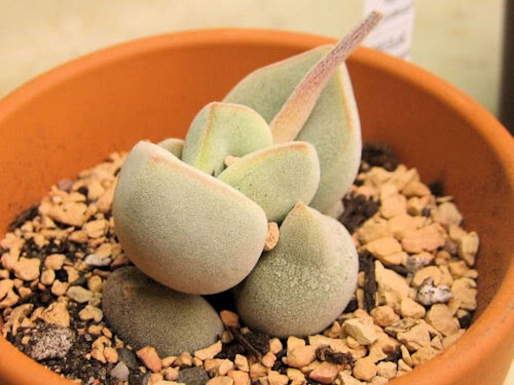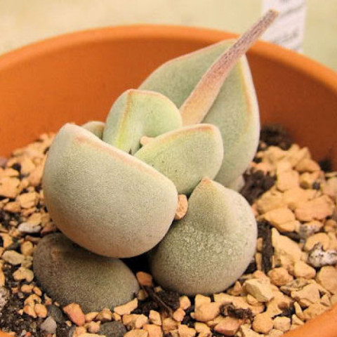 Crassula sericea var. hottentotta, Crassulaceae familyası içinde yer alan Crassula sericea türünün varyetelerinden biridir. Doğal yaşam alanlarında genellikle yarı kurak bölgelerde, taşlık ve mineral ağırlıklı zeminlerde gelişim gösterir. Bu çevresel koşullar, bitkinin su depolama kapasitesi yüksek, kompakt ve dayanıklı bir yapı kazanmasına neden olmuştur. Gövde yapısı kısa boğumlu olup zamanla tabandan dallanarak küçük kümeler oluşturabilir. Crassula sericea var. hottentotta’nın yaprakları etli, kalın ve belirgin şekilde su tutma özelliğine sahiptir. Yaprak formu çoğunlukla oval ile yuvarlağa yakın bir yapı sergiler ve gövde üzerinde karşılıklı dizilim gösterir. Yaprak yüzeyi, varyeteye özgü olarak yoğun ve homojen bir ipeksi doku ile kaplıdır. Bu kadifemsi yapı, yapraklara mat ve yumuşak bir görünüm kazandırırken, aynı zamanda aşırı ışık ve buharlaşmaya karşı koruyucu bir katman işlevi görür. Renklenme genellikle açık gri-yeşil, gümüşü yeşil ya da soluk yeşil tonlarında gözlemlenir. Işık düzeyine bağlı olarak renk yoğunluğu değişebilir; yüksek aydınlık koşullarda yaprak yüzeyi daha açık ve mat bir görünüm alabilir.