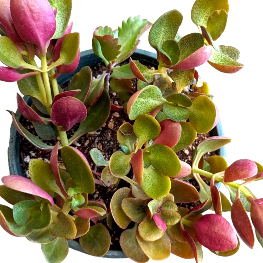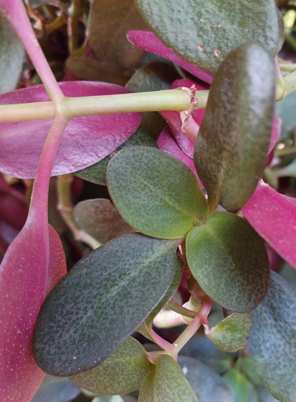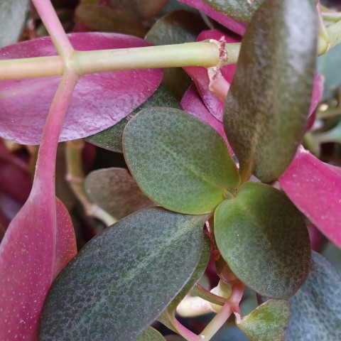 Crassula streyi’de yaprakların alt yüzeyi, türün ayırt edici morfolojik özelliklerinden biridir ve bakım anlatımında ayrıca ele alınması gerekir. Yaprak altları genellikle üst yüzeye kıyasla daha belirgin renklenme gösterir. Üst yüzey çoğunlukla yeşil veya gri-yeşil tonlarda kalırken, yaprak altlarında pembe, kırmızı, bordo ya da morumsu tonlar daha yoğun şekilde ortaya çıkabilir. Bu kontrast, özellikle yüksek ışık koşullarında belirginleşir ve bitkiye iki renkli bir görünüm kazandırır. Yaprak altındaki bu renklenme, antosiyanin pigmentlerinin artışıyla ilişkilidir ve fizyolojik bir adaptasyon olarak değerlendirilir.