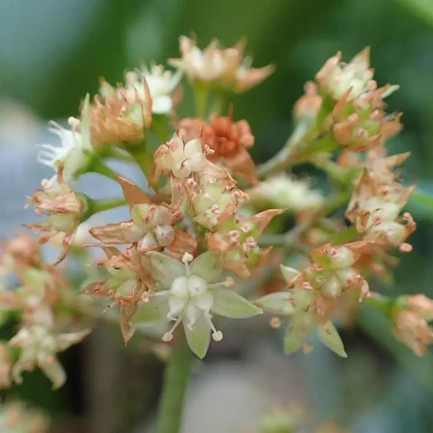Crassula streyi’nin çiçekleri küçük boyutlu, yıldız formunda ve genellikle salkım hâlinde görülür. Çiçek renkleri çoğunlukla beyazdan açık krem veya soluk pembe tonlarına kadar değişkenlik gösterebilir. Çiçeklenme, yeterli ışık düzeyi ve büyüme döneminde dengeli bakım koşullarının sağlanmasıyla doğrudan ilişkilidir. Çiçeklenme dönemi tamamlandıktan sonra bitki vejetatif gelişimini sürdürmeye devam eder.