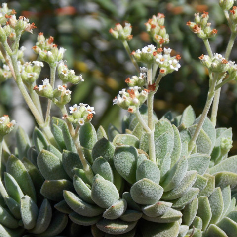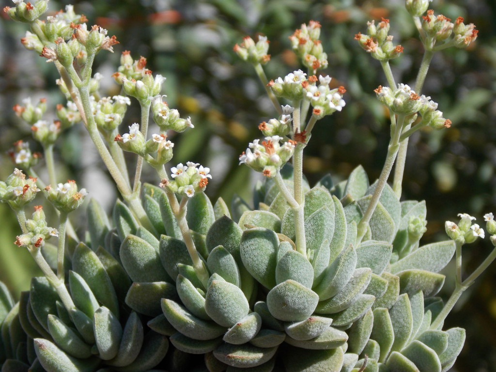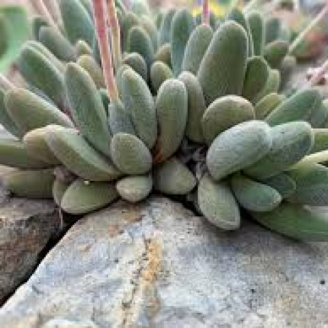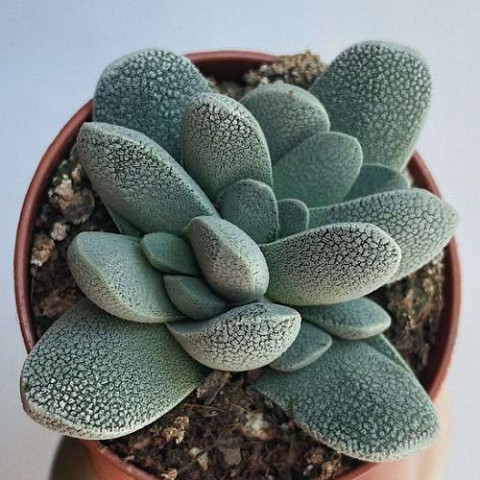 Crassula tecta, Crassulaceae familyası içinde yaprak yüzey dokusu ile ayırt edilen, kompakt gelişimli ve koleksiyon değeri yüksek bir sukulent türüdür. Doğal yayılımı Güney Afrika’nın kurak ve yarı kurak bölgelerine uzanır. Bitki, doğada genellikle kayalık alanlarda, ince ve mineral ağırlıklı toprak tabakaları üzerinde yaşamını sürdürür. Bu habitat koşulları, Crassula tecta’nın suyu verimli biçimde depolayan yapraklar geliştirmesine ve uzun süreli nemden kaçınan bir büyüme karakteri kazanmasına neden olmuştur. Tür, düşük boylu ve sıkı yapılı gelişimiyle dikkat çeker; çoğunlukla küçük kümeler hâlinde büyür. Crassula tecta’nın yaprakları etli, kalın ve kısa saplıdır. Yapraklar gövde üzerinde karşılıklı dizilir ve bitkiye kompakt, düzenli bir görünüm kazandırır. Yaprak formu ovalden yuvarlağa yakın şekiller arasında değişebilir. Türün en belirgin özelliği, yaprak yüzeyinin ince, granüllü ve pudramsı bir dokuya sahip olmasıdır. Bu yapı, yaprağın üzerinde doğal bir kaplama hissi oluşturur ve ışık yansımalarını azaltır. Yaprak rengi çoğunlukla açık gri, mavi-gri veya soluk yeşil tonlarındadır. Yüksek ışık koşullarında yaprak uçlarında hafif pembemsi ya da kızılımsı alt tonlar gelişebilir. Yaprak alt yüzeyi üst yüzeye göre daha açık renklidir ve dokusal yapı bu bölgede daha yumuşak algılanır.