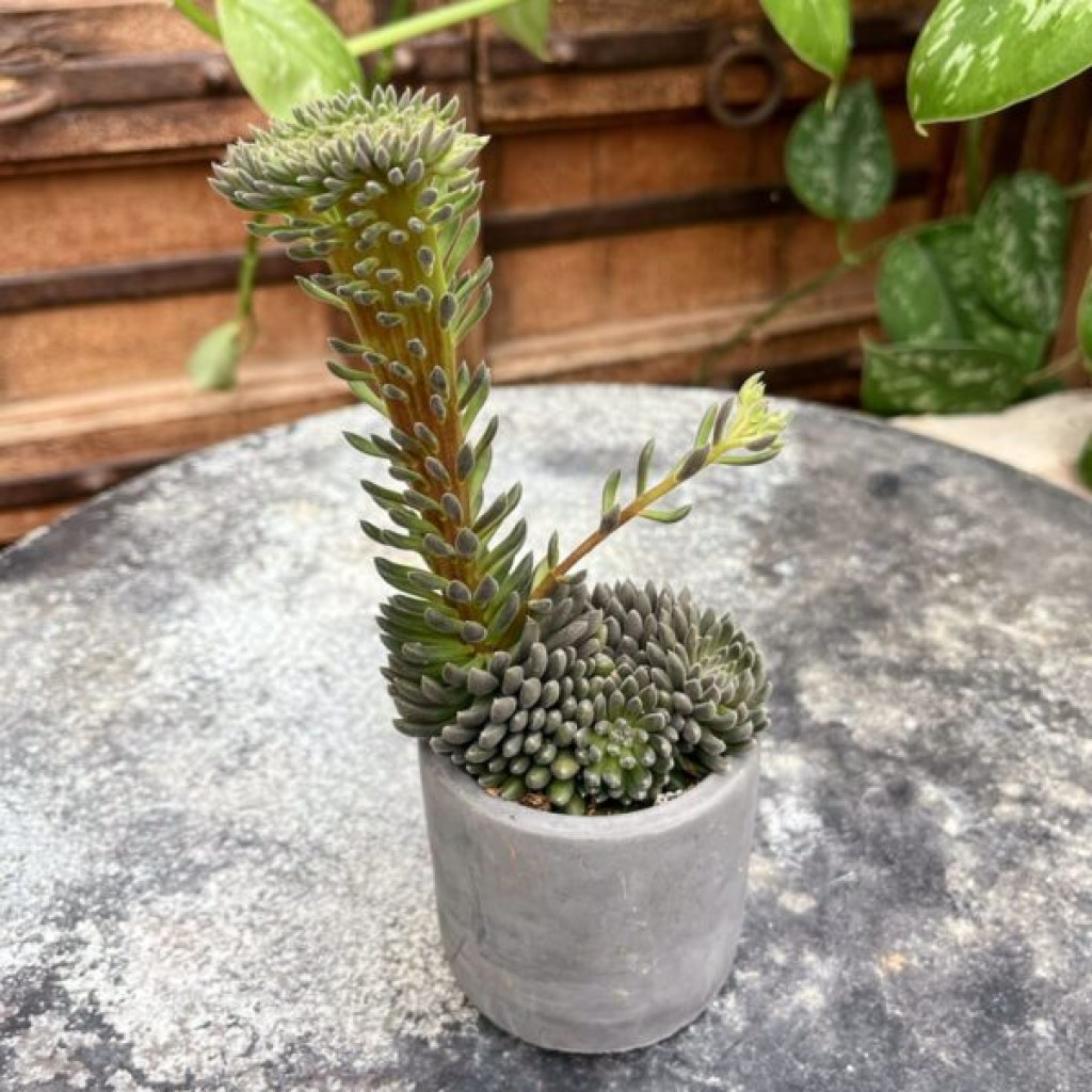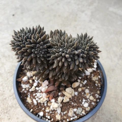 Sinocrassula yunnanensis ‘Cristata’, Crassulaceae familyasına ait Sinocrassula yunnanensis türünün kristat (fasiyasyon) formudur. “Cristata” ifadesi, bitkinin büyüme noktasında meydana gelen genetik ya da fizyolojik bir bozulma sonucu, normal rozet gelişimi yerine yelpaze, dalga veya tarak benzeri bir büyüme formu oluşturduğunu ifade eder. Bu yapı kalıcıdır ve bitkinin tüm gelişim dinamiklerini etkiler. Sinocrassula yunnanensis ‘Cristata’, doğal türün kompakt ve dayanıklı yapısını korumakla birlikte, kristat formu nedeniyle bakımda daha kontrollü koşullar gerektirir.