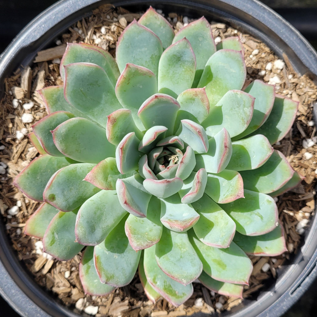 Echeveria ‘Apus’, Crassulaceae familyasına ait, kompakt rozet yapısı ve dengeli yaprak dizilimiyle tanınan bir sukulenttir. Kısa gövde üzerinde merkezden dışa doğru katmanlı biçimde yerleşen etli yaprakları sayesinde simetrik ve dolgun bir görünüm oluşturur. Gelişim formu çevresel koşullara bağlı olarak değişebilir; yeterli ışık altında rozet daha sıkı ve belirgin kalır. Su depolama kapasitesi yüksek yaprak dokusu, bitkiye kurak dönemlere karşı tolerans kazandırır. Buna karşılık kök bölgesinde uzun süreli nem birikimi çürüme riskini artırır ve alt yapraklarda bozulmaya yol açabilir. Echeveria ‘Apus’ yaprakları kalın, etli ve genellikle spatulaya yakın formdadır. Yaprak uçları hafif sivri ya da yuvarlağa yakın olabilir. Yüzey dokusu pürüzsüzdür ve çoğunlukla ince bir mumsu tabaka ile kaplıdır. Bu kaplama, su kaybını azaltarak yaprak dayanıklılığını destekler. Renklenme ışık düzeyine bağlıdır. Yüksek aydınlıkta açık yeşil zemin üzerine pembe, leylak ya da hafif kırmızımsı kenar tonları gelişir. Düşük ışık koşullarında renkler daha yeşil kalır ve rozet aralıkları açılabilir. Sürekli nemli ortamda yaprak dokusunda yumuşama ve alt kısımlarda çürüme belirtileri görülebilir.