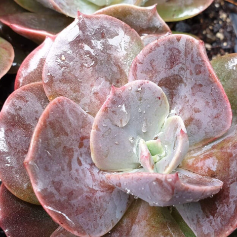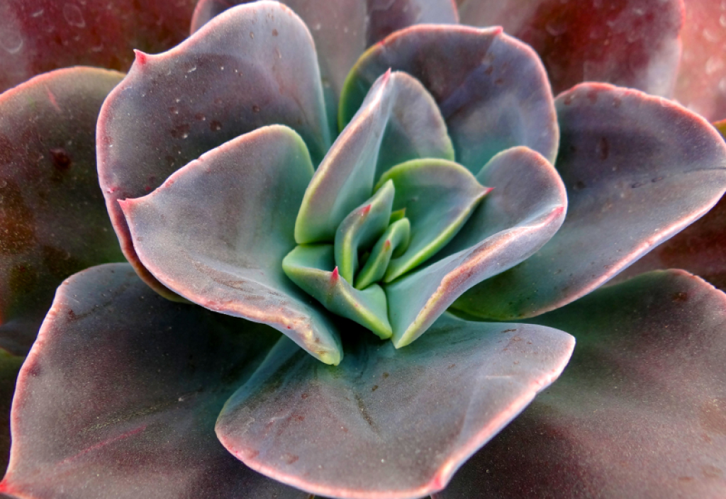 Echeveria ‘Blue Metal’, adını yapraklarında görülen metalik mavi-gri tonlardan alan kompakt rozet formuna sahip bir sukulent türüdür. Melezlendiği türler bilinmemektedir. Crassulaceae familyasına ait bu kültivar, simetrik yaprak dizilimi ve yoğun yaprak yerleşimiyle dikkat çeker. Gövde çoğunlukla kısa ve gizlidir; yapraklar dipten sık şekilde dizilerek belirgin bir rozet oluşturur. Uygun yetiştirme koşullarında rozet formu düzenli kalır ve merkezden dışa doğru katmanlı bir yapı sergiler. Echeveria ‘Blue Metal’ yaprakları kalın, etli ve su depolama kapasitesi yüksek yapıdadır. Yaprak formu geniş spatula ile oval arasında değişebilir. Uç kısımlar genellikle hafif sivridir. Yaprak yüzeyi çoğunlukla belirgin bir pudramsı tabaka (farina) ile kaplıdır. Bu tabaka, ışık yoğunluğuna karşı koruyucu bir işlev görür ve bitkiye mat, metalik bir görünüm kazandırır. Yaprak rengi ışık koşullarına bağlı olarak değişkenlik gösterir. Güçlü aydınlıkta mavi-gri tonlar daha yoğun ve soğuk bir karakter kazanır. Daha düşük ışıkta tonlar gri-yeşil aralığına kayabilir. Aşırı nemli ortam koşullarında yaprak dokusunda yumuşama ve renk matlaşması görülebilir.