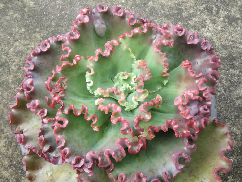 Renk tonları çevresel koşullara göre değişkenlik gösterebilir. Yeterli ışık altında mavi-yeşil, grimsi yeşil ya da açık lavanta tonları görülebilir. Soğuk dönemlerde ve yüksek ışıkta yaprak kenarlarında pembemsi ya da kırmızıya yakın pigmentasyon artışı gözlenebilir. Düşük ışıkta renk doygunluğu azalır ve rozet yapısı gevşeyebilir.