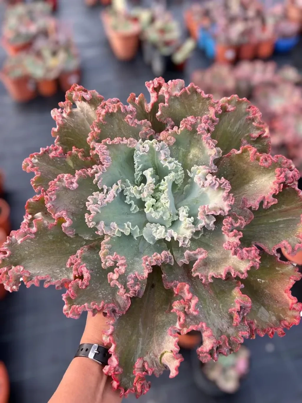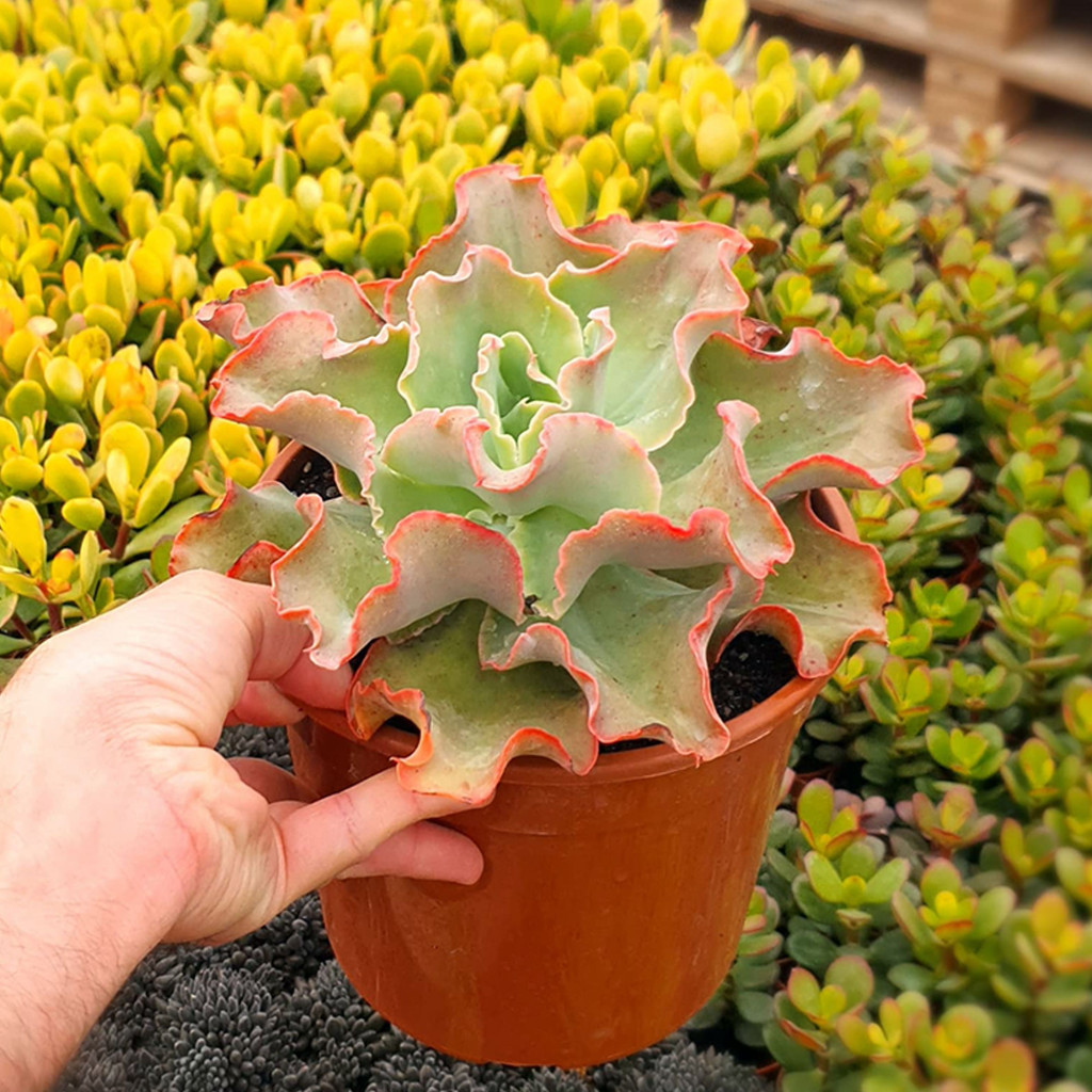 Çoğaltma işlemi yaprak çeliği veya oluşan yan rozetlerin ayrılmasıyla yapılabilir. Yaprakla çoğaltmada kesik yüzey kurutulmalı ve köklendirme sürecinde aşırı nemden kaçınılmalıdır. Yavru rozetler yeterli büyüklüğe ulaştığında ayrılarak yeni saksılara alınabilir. Gübreleme yalnızca ilkbaharda ve düşük dozda uygulanmalıdır. Sukulentlere uygun dengeli içerikli besinler tercih edilmelidir. Aşırı azotlu uygulamalar yaprak dokusunun yumuşamasına ve form kaybına yol açabilir. Kontrollü besleme, iri rozet gelişimini ve kenar kıvrımlarının belirginliğini destekler.