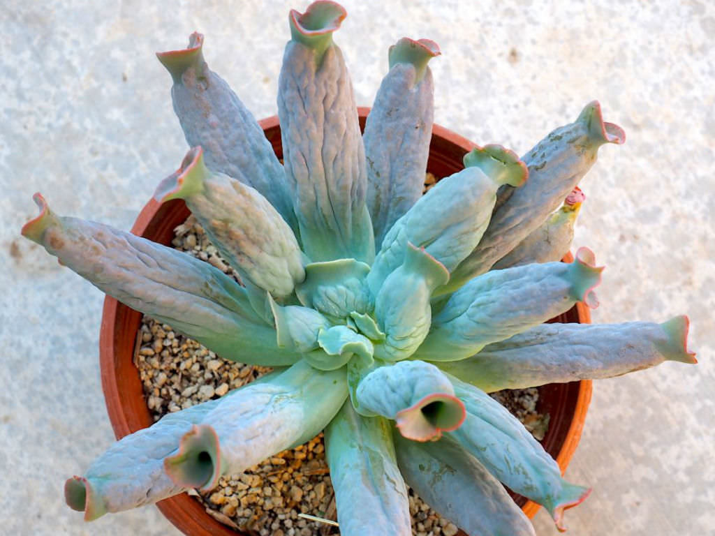 Saksı seçiminde drenaj deliği bulunması önemlidir. Toprak saksı kullanımı nemin daha dengeli uzaklaşmasına yardımcı olabilir. Saksı hacmi kök sistemine uygun seçilmeli, gereğinden büyük kaplardan kaçınılmalıdır. Gübreleme ilkbaharda, büyüme döneminde düşük dozlu ve dengeli bir sukulent gübresiyle yapılmalıdır. Seyreltilmiş oran tercih edilmeli, aşırı gübrelemeden kaçınılmalıdır. Yazın aşırı sıcak dönemlerinde ve kışın dinlenme sürecinde gübreleme yapılmaz. Fazla besin, formun gevşemesine ve doku zayıflamasına yol açabilir. Çiçeklenme döneminde merkezden uzayan ince bir sap üzerinde pembe tonlarda açar. Çoğaltma işlemi dipten oluşan yavruların ayrılmasıyla yapılabilir; yaprak çeliği yöntemi ise tüp formu nedeniyle her zaman yüksek başarı oranı vermez.