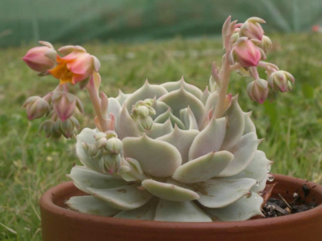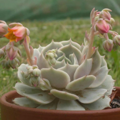 Saksı seçimi kök hacmine uygun olmalıdır. Gereğinden büyük saksılar toprağın daha uzun süre nemli kalmasına neden olur. Drenaj deliği bulunan saksılar kullanılmalı ve mümkünse toprak saksı tercih edilmelidir. Bu, nemin daha hızlı uzaklaşmasına yardımcı olur. Çoğaltma genellikle yaprak çeliği veya yan rozet ayırma yöntemiyle yapılır. Sağlıklı bir yaprak dipten dikkatlice ayrılır ve kesik yüzey birkaç gün kurutulduktan sonra geçirgen karışım üzerine yerleştirilir. Köklendirme sürecinde aşırı sulama yapılmamalıdır. Çiçeklenme döneminde rozet merkezinden ince bir çiçek sapı yükselir. Sap üzerinde küçük, çan formunda çiçekler oluşur. Çiçekler pembe ya da turuncu tonlardadır. Çiçeklenme tamamlandıktan sonra sap kesilerek bitkinin enerjisinin yeniden vejetatif büyümeye yönlendirilmesi sağlanabilir.