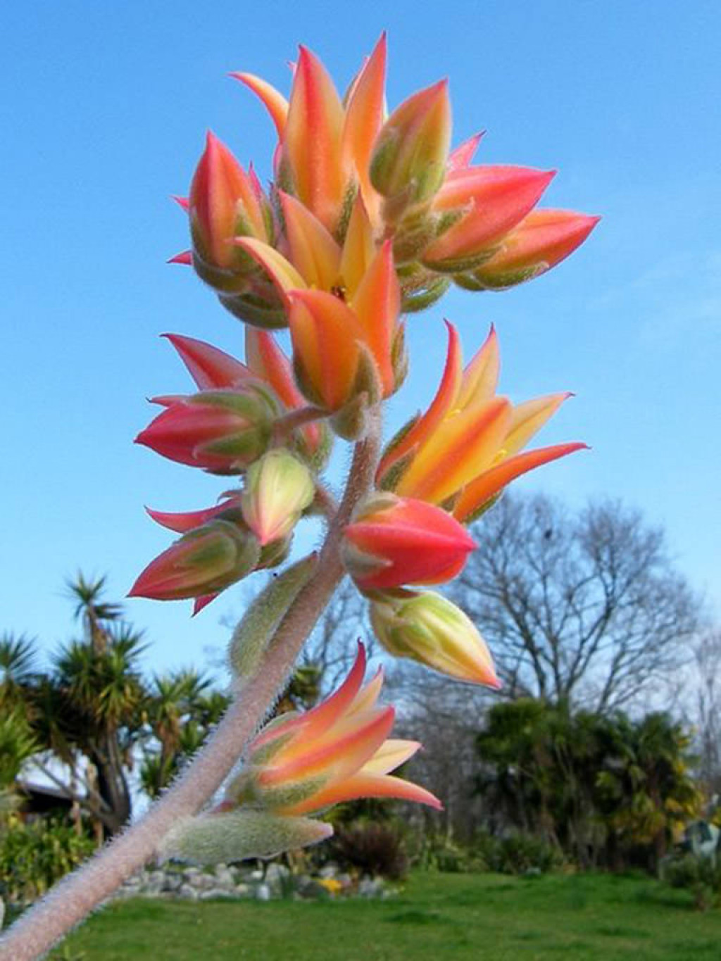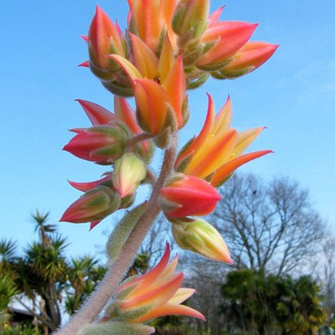 Çoğaltma yaprak çeliği veya yan sürgün ayırma ile gerçekleştirilebilir. Yaprak dikkatlice ayrılmalı ve kesim yüzeyi birkaç gün kurutulduktan sonra geçirgen karışım üzerine yerleştirilmelidir. Köklenme sürecinde aşırı sulamadan kaçınılmalıdır. Gübreleme yalnızca aktif büyüme döneminde ve düşük dozda yapılmalıdır. İlkbaharda sukulentlere uygun dengeli içerikli bir besin tercih edilebilir. Yüksek azotlu uygulamalar yaprak dokusunun zayıflamasına neden olabilir. Çiçeklenme genellikle ilkbahar sonu ile yaz başında gerçekleşir. Rozet merkezinden yükselen ince bir çiçek sapı üzerinde sarkık çan formunda çiçekler açar. Çiçekler çoğunlukla turuncu veya sarı tonlarındadır. Çiçeklenme yeterli ışık ve sağlıklı gelişimle ilişkilidir. Çiçek sapı kuruduktan sonra dipten kesilebilir.